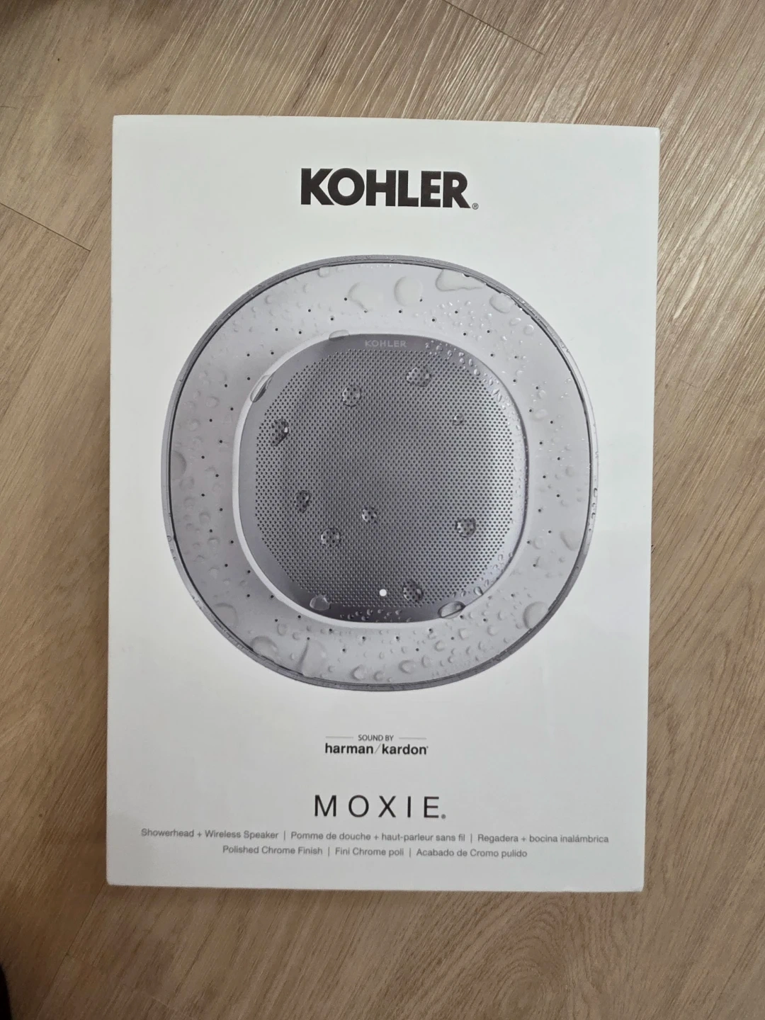 Selling a KOHLER Moxie showerhead with a built-in wireless speaker! It's in polished chrome finish and sounds great thanks to Harman/Kardon. Enjoy your favourite tunes while you shower. Box included