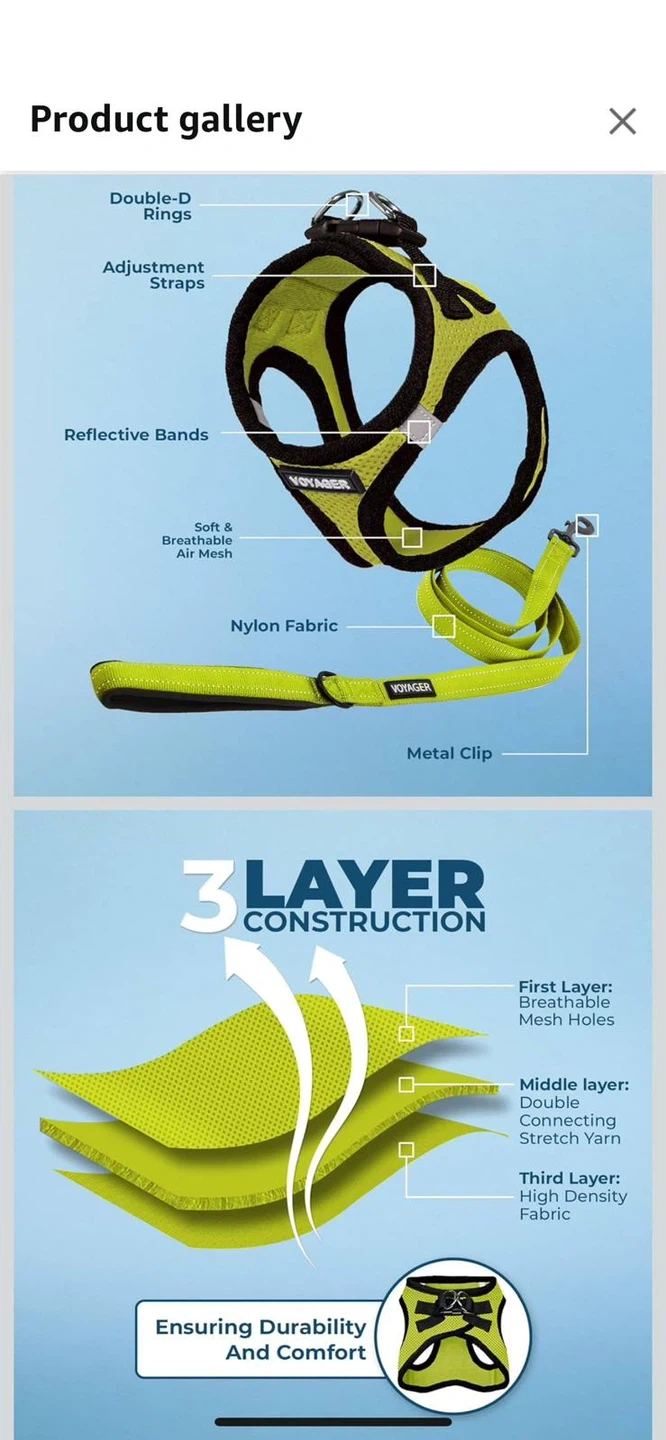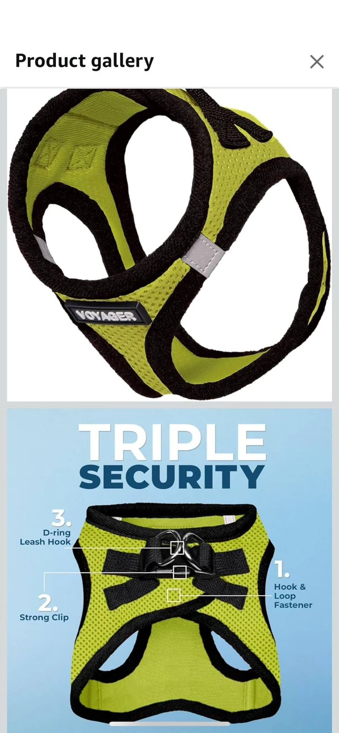 Selling a new Voyager Step-in Air Dog Harness in a vibrant lime green! This harness is size medium and features an all-weather mesh design, perfect for small and medium dogs. It's made with a 3-layer construction for durability and comfort, including breathable air mesh and nylon fabric. The harness also has reflective bands for added safety during walks!
