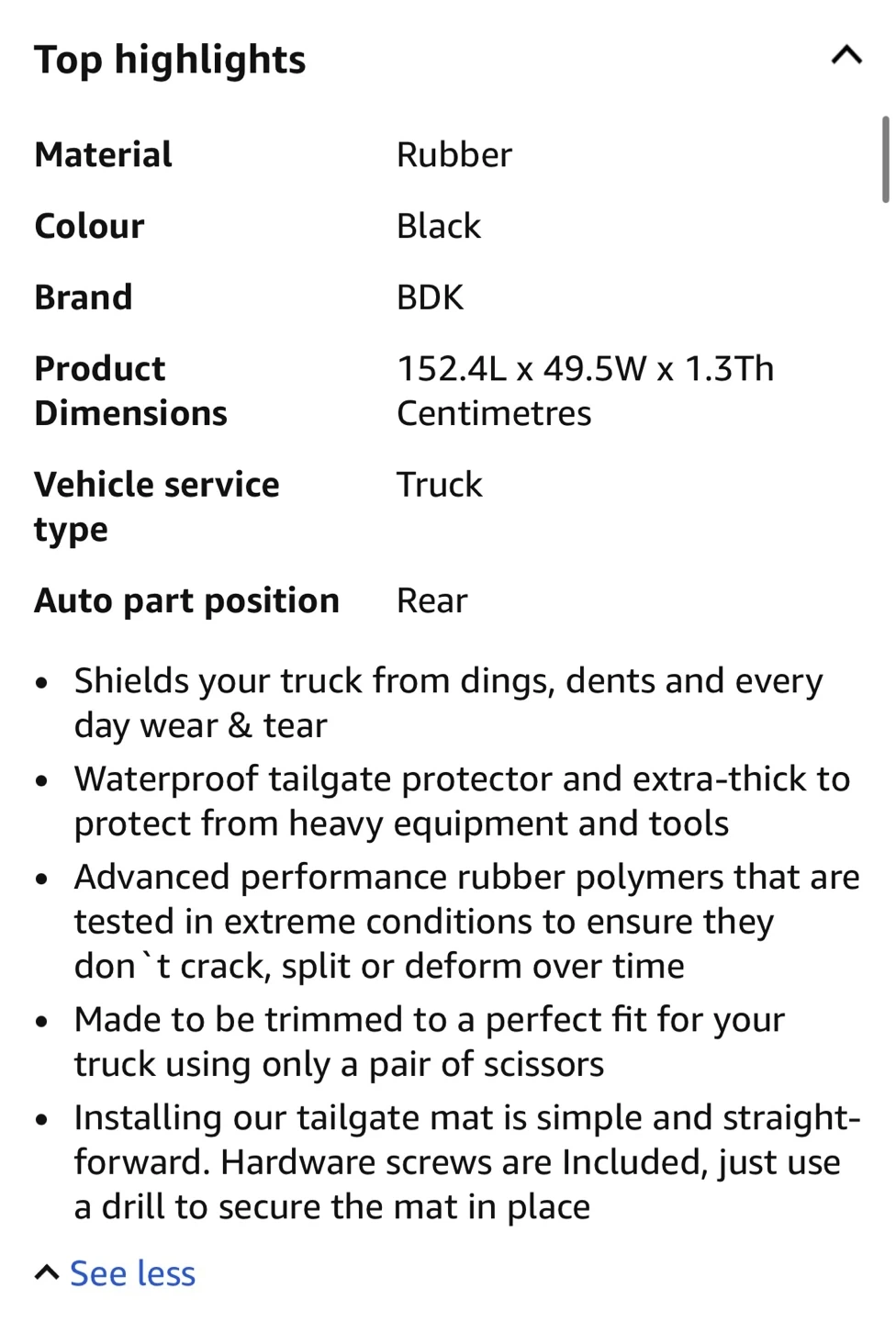 Keep your truck bed looking great with this BDK Auto MT-600 Tailgate Mat! It's designed to help prevent dings and scratches, and it's super easy to install with the included mounting hardware.