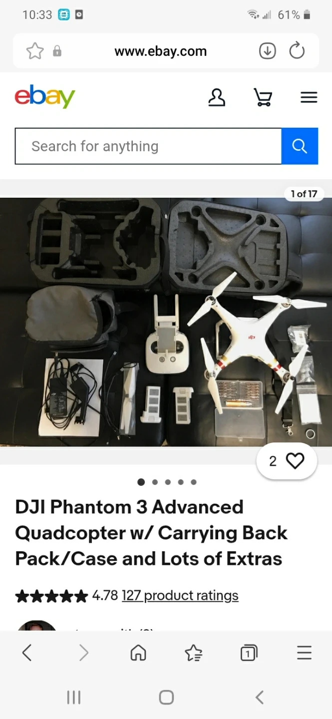 Selling a DJI Phantom 3 Advanced drone with a 4K camera and gimbal. It also includes the remote controller. The box is included, and you can see the drone and its components in the photos!Brand new in the box,never used mainly for law enforcement, fire rescue and bomb squad etc etc