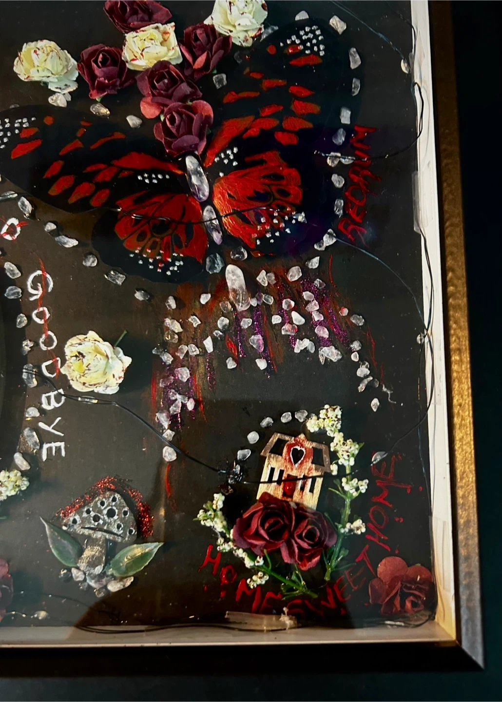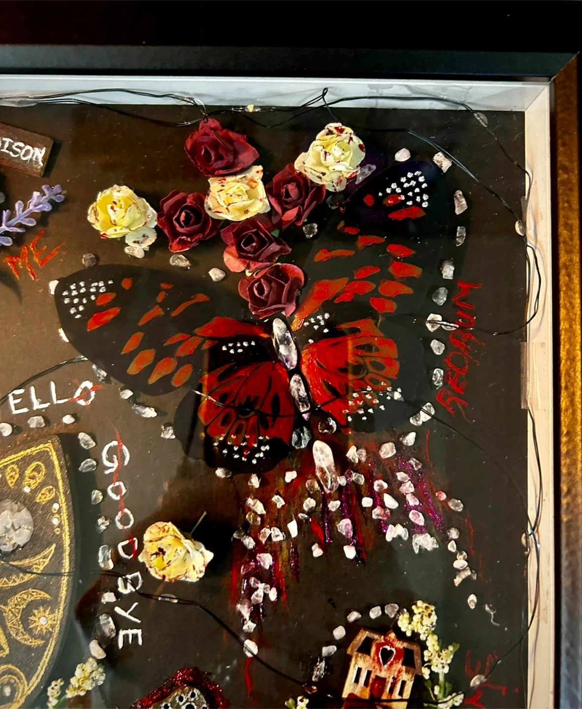 Gothic Ouija Shadow Box Art with Butterflies & LED Glow