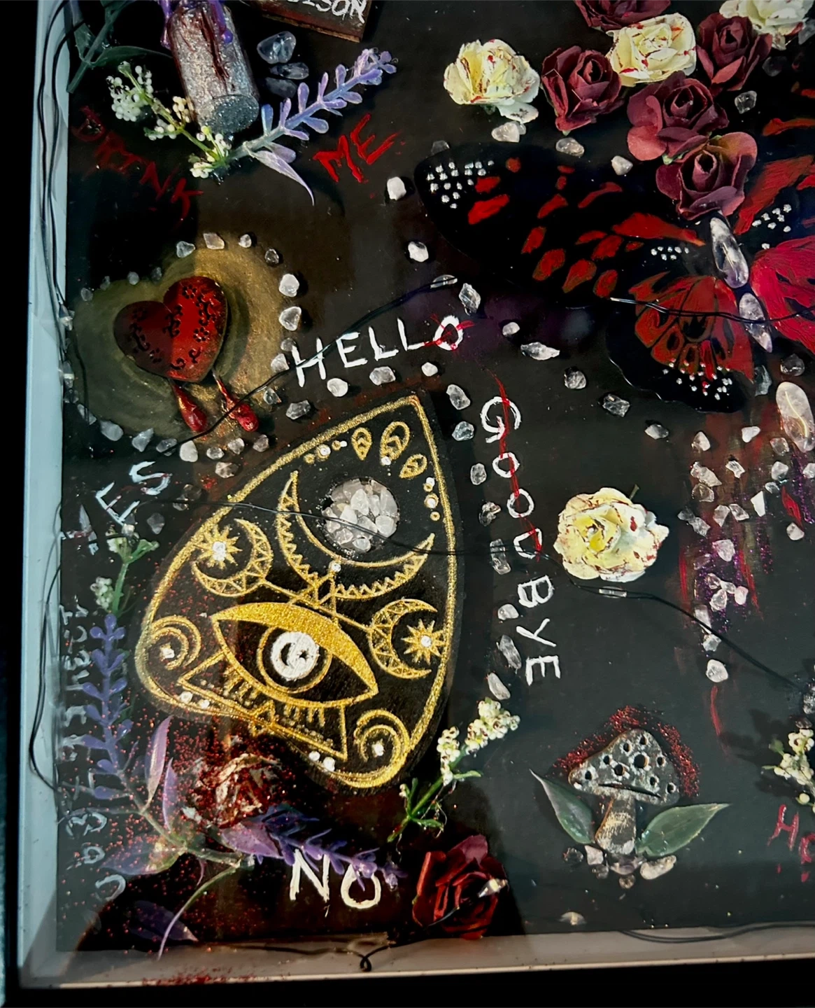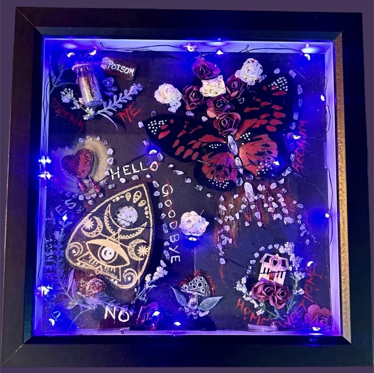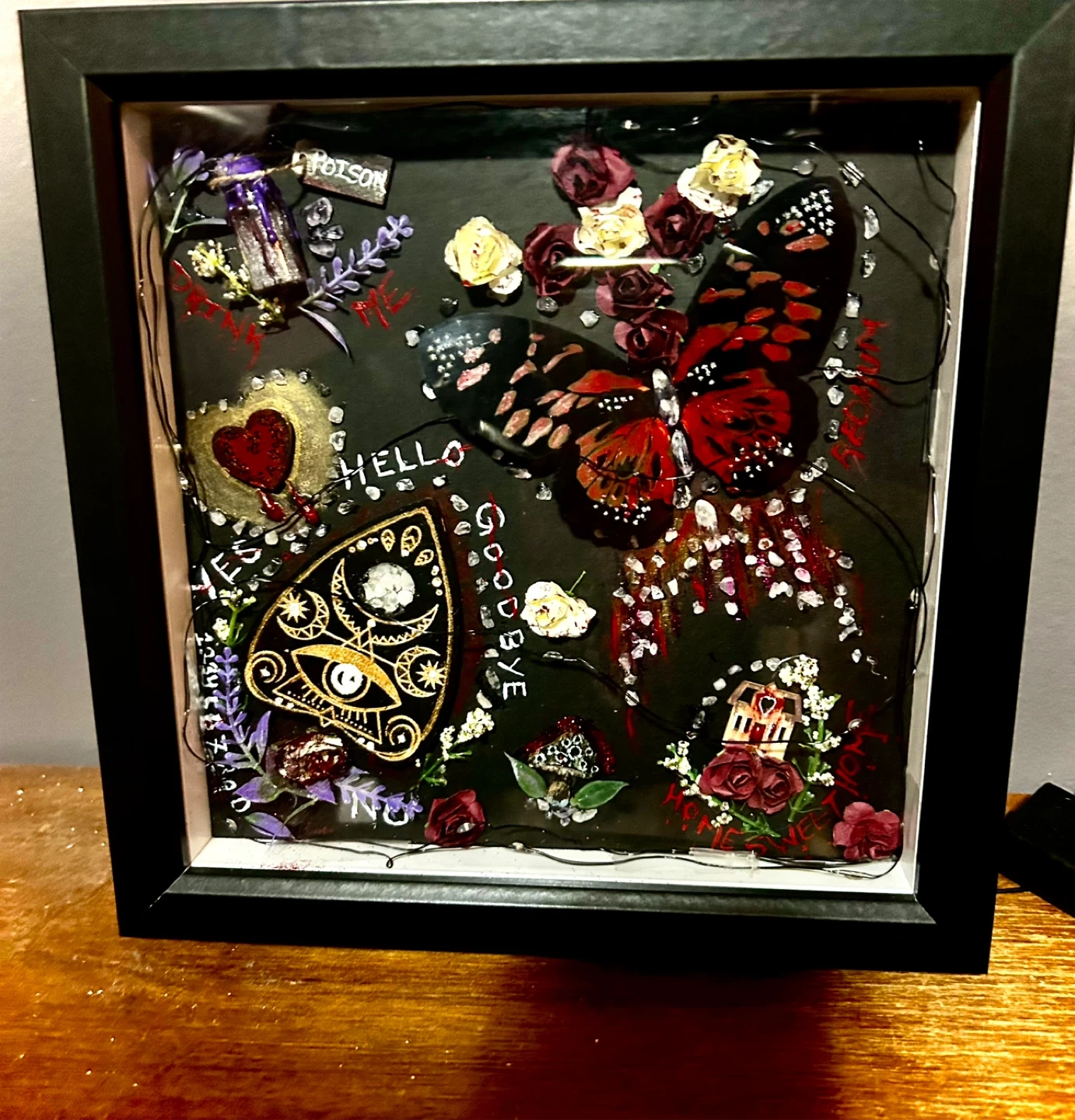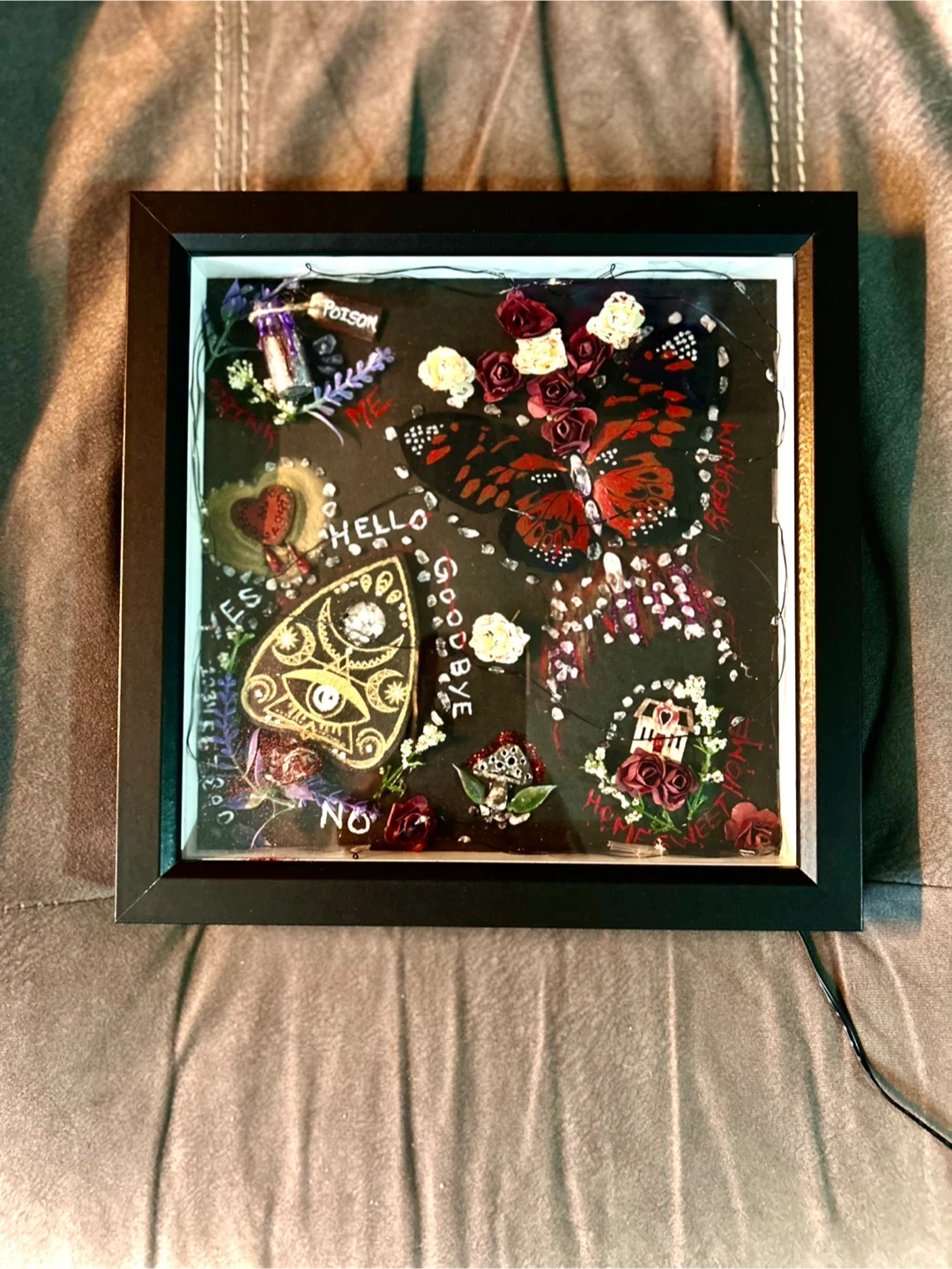 Gothic Ouija Shadow Box Art with Butterflies & LED Glow