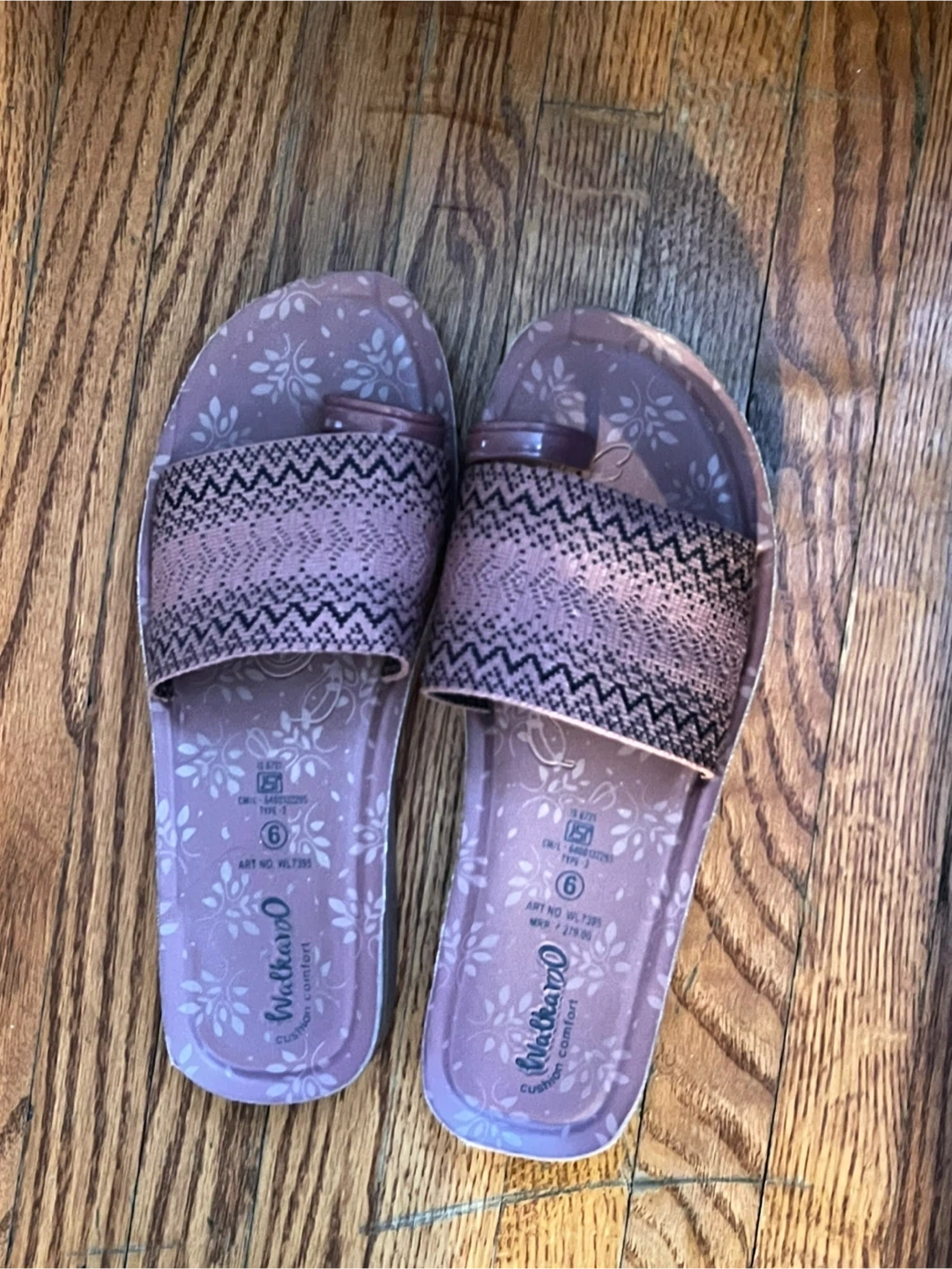 Selling a pair of Walkaro cushion comfort slides in size 6. They feature a stylish design and look very comfortable!