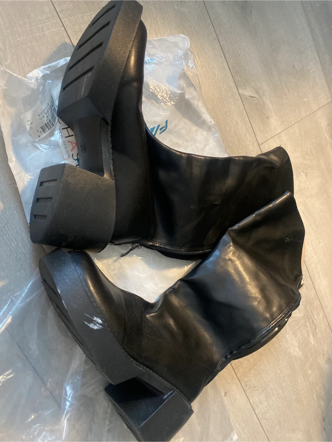 Selling a pair of black Fashion Style boots. They have a chunky heel and a zipper at the back. Please see photos for condition! Selling because it fits better for shorter people (under 160cm). Size 6