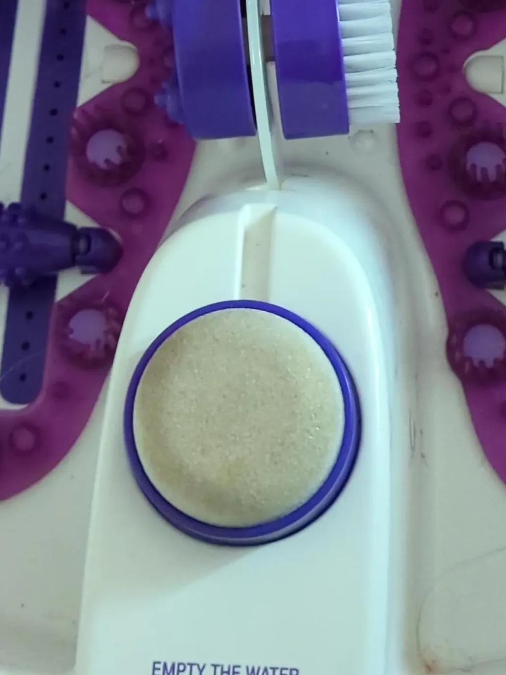 This foot spa features massage rollers and a pumice stone attachment for a relaxing at-home pedicure experience! The purple and white design is both functional and stylish