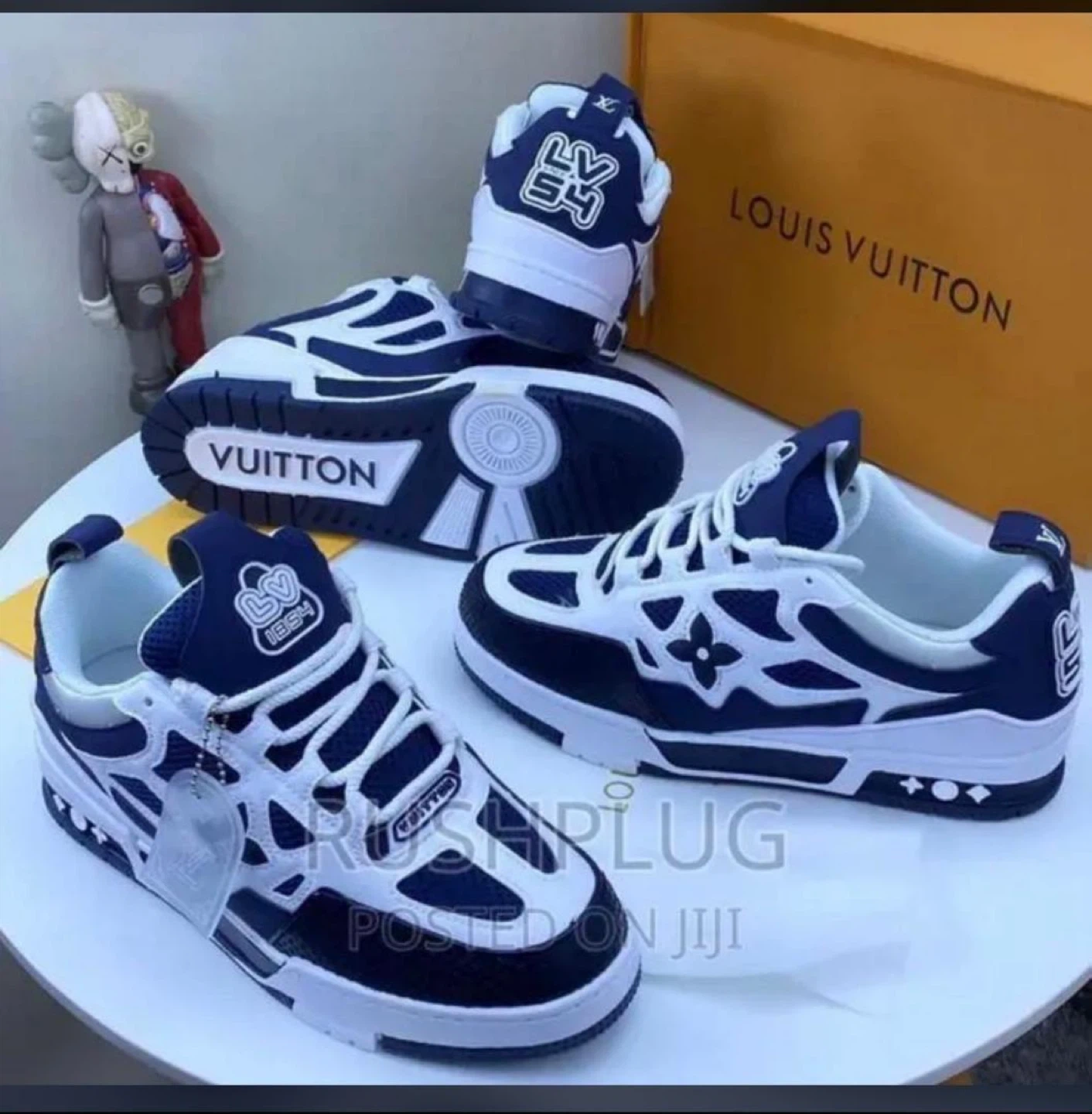 Up for sale is a pair of Louis Vuitton LV Trainer sneakers in a stylish blue and white colourway. These sneakers are in great condition and feature the iconic LV logo and design. Perfect for adding a touch of luxury to your everyday look!