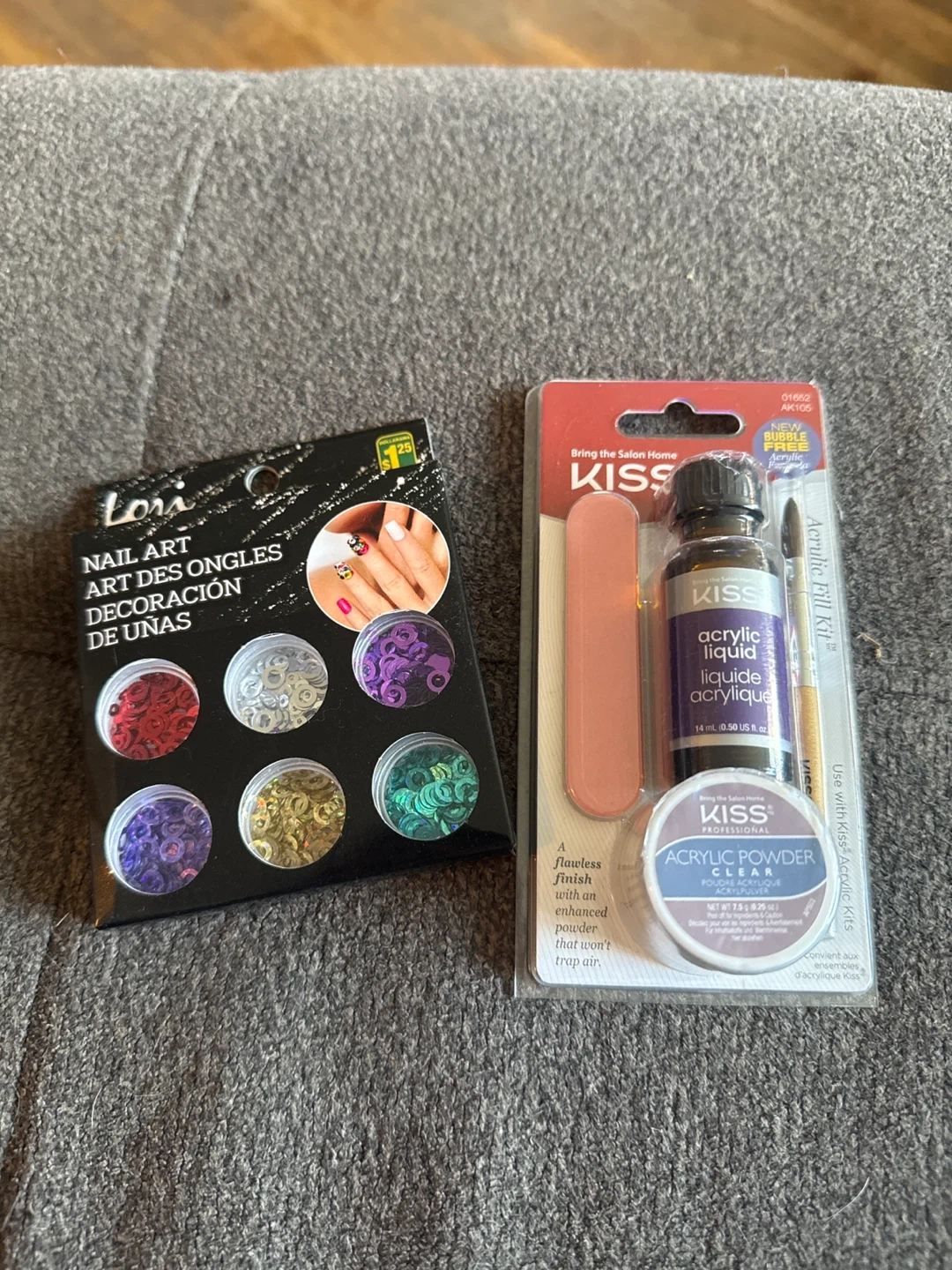Selling a Kiss Acrylic Fill Kit to bring the salon home! It includes acrylic liquid and powder for a flawless finish. Also included is a Lori Nail Art set for decorations