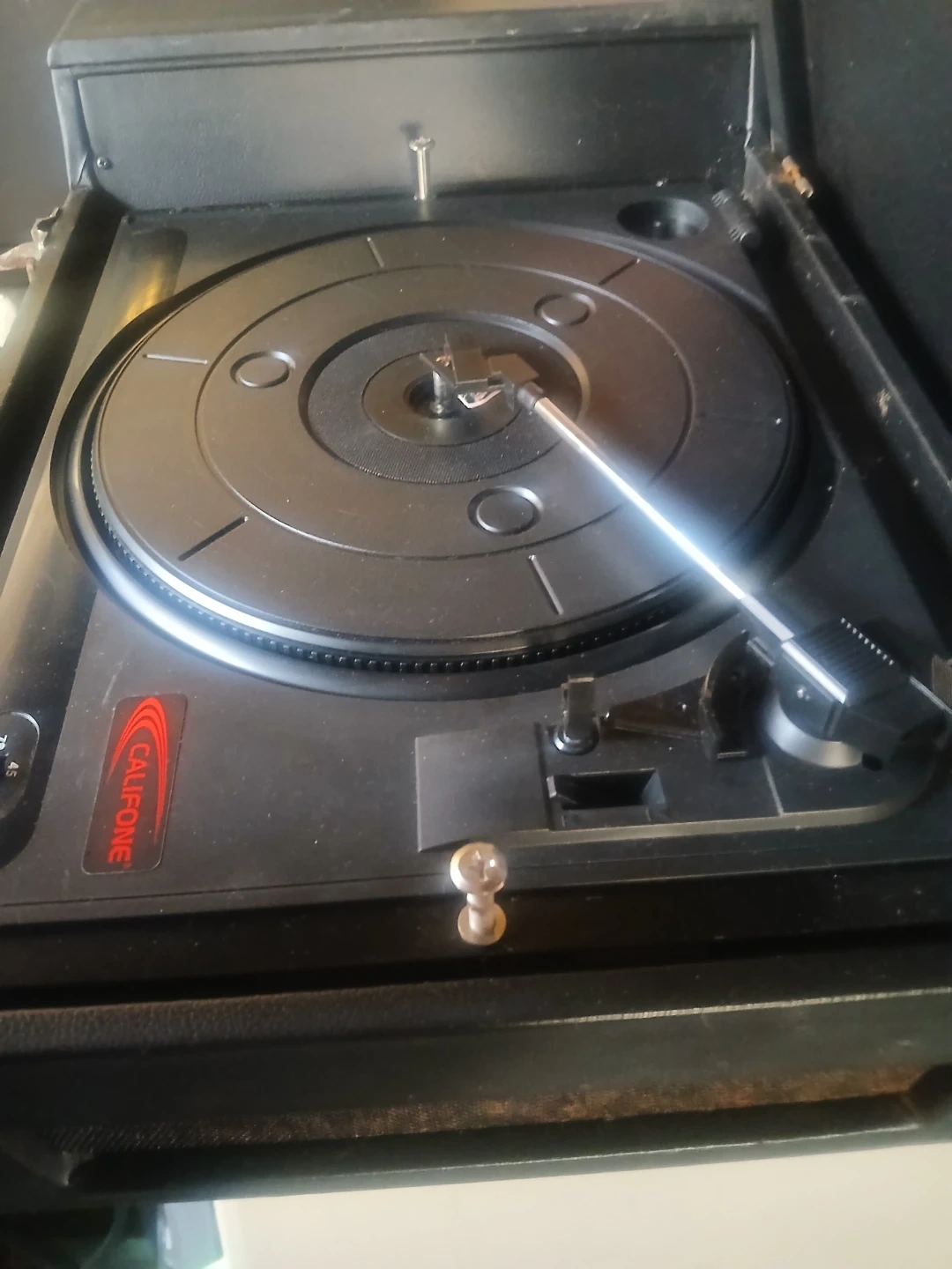 Selling a Califone portable record player. It's in used condition with some wear and tear, but it's still functional. Perfect for someone who loves vintage audio equipment🥕