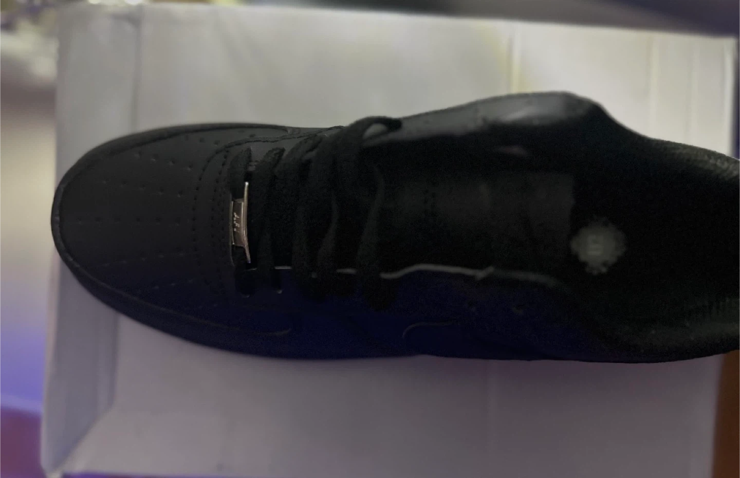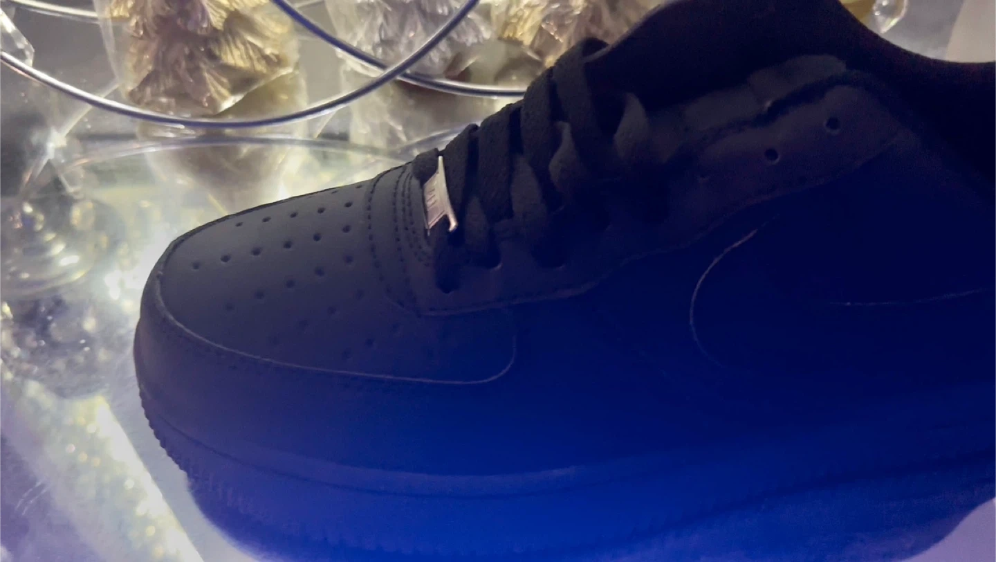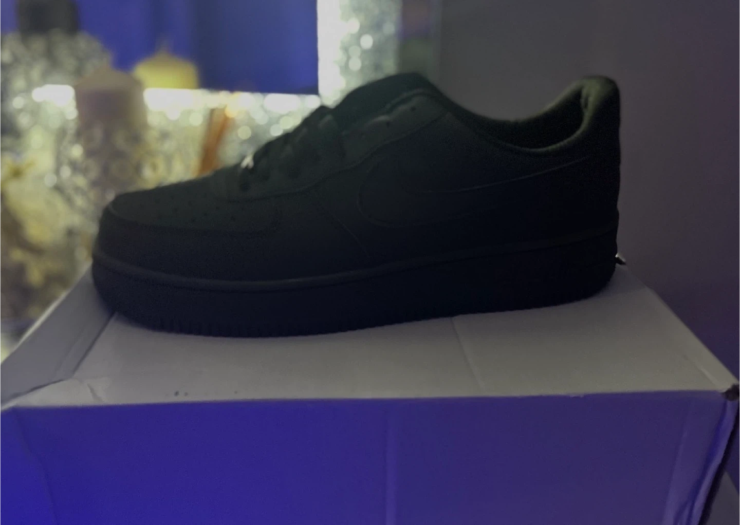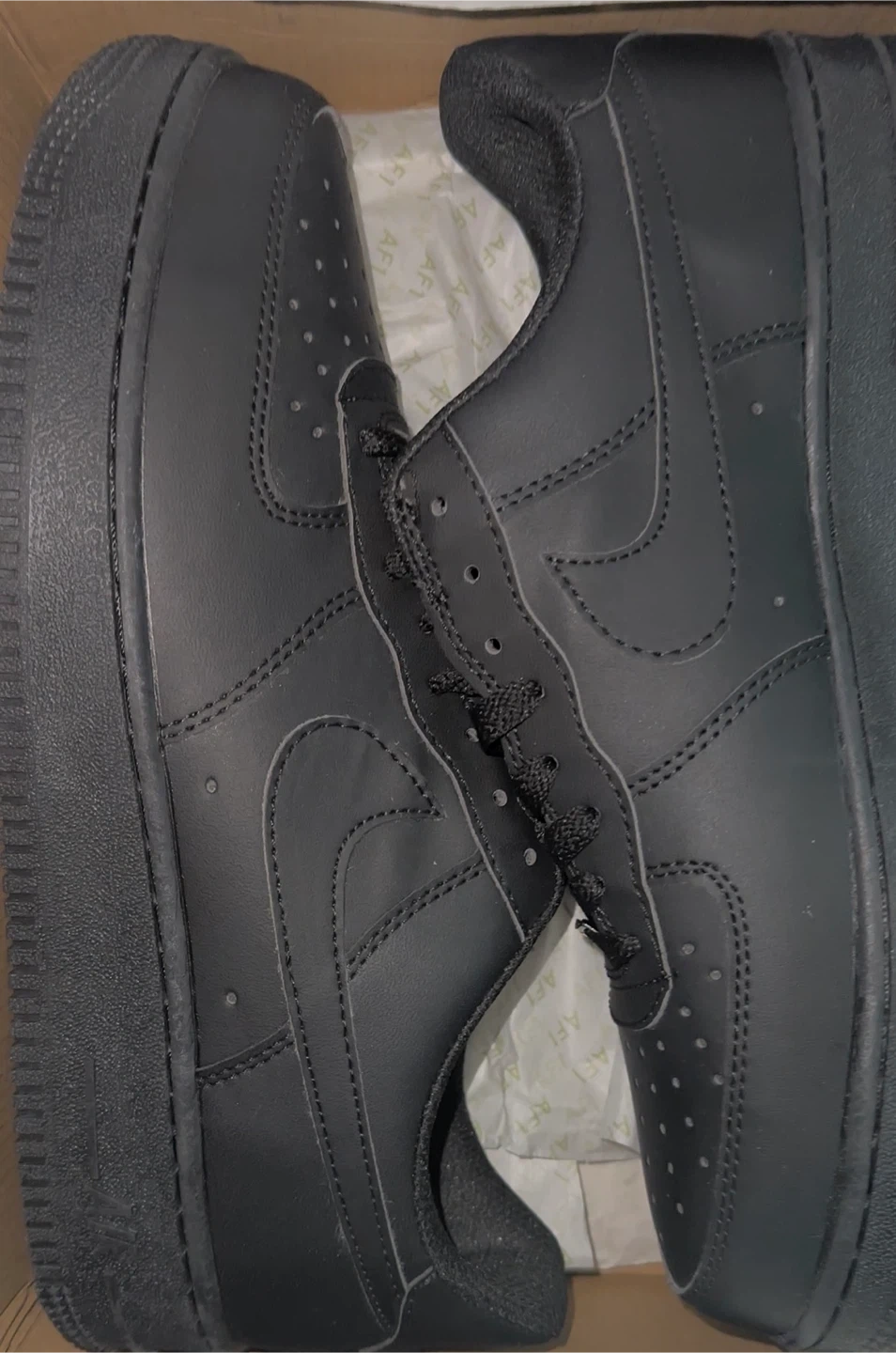 Selling a pair of Nike Air Force 1s in black, size 11. They come with the box! brand new and fresher and ready for our owner