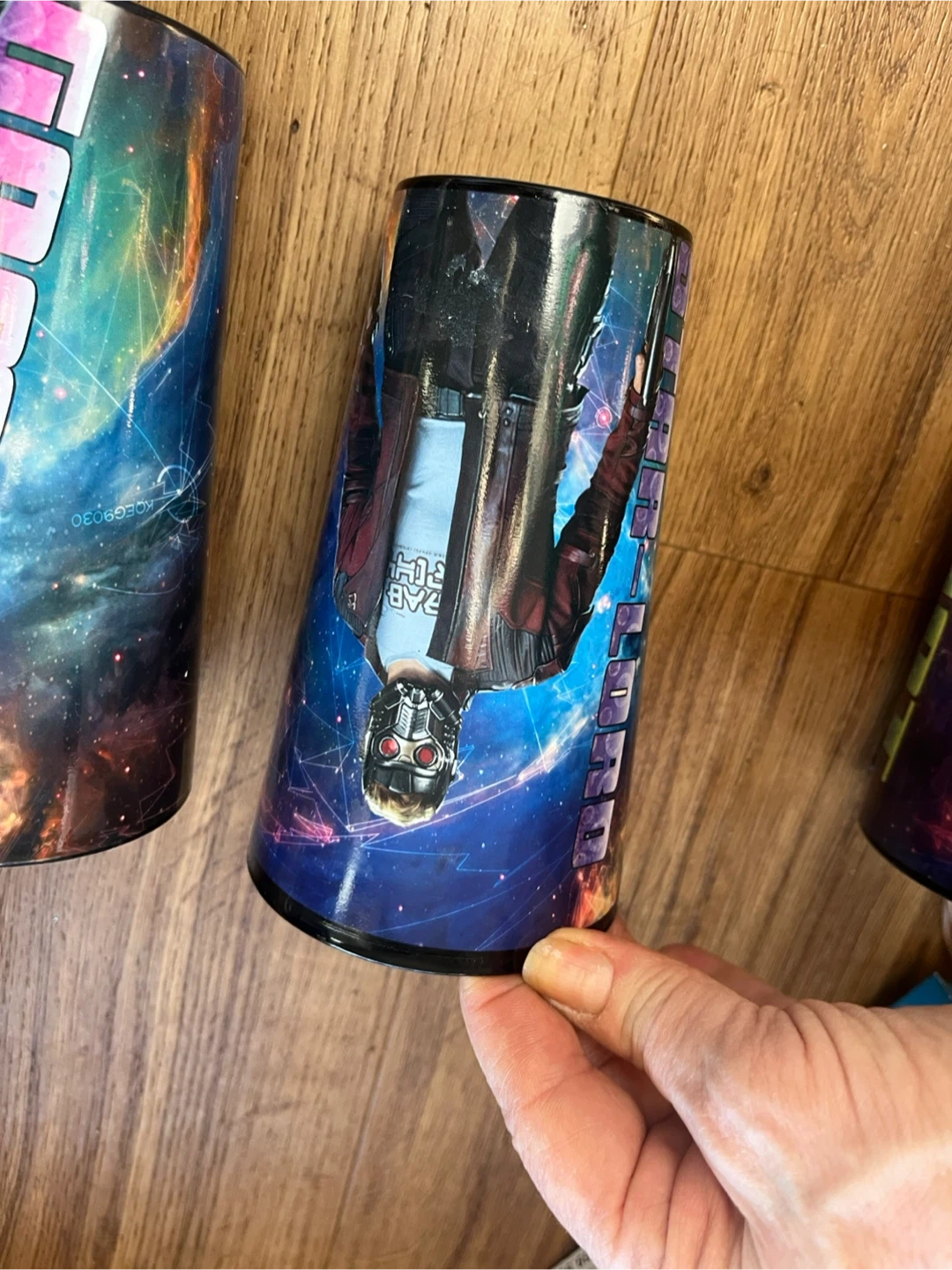 Selling a set of Guardians of the Galaxy tumblers! Each tumbler features a different character from the movie, including Gamora, Star-Lord, and Drax. Perfect for any Marvel fan. All 3 for $10