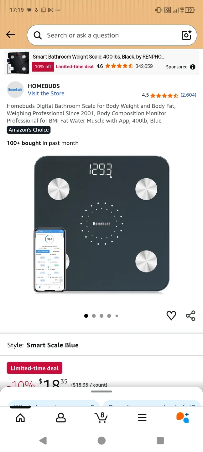 Selling a Homebuds digital bathroom scale in smart scale blue