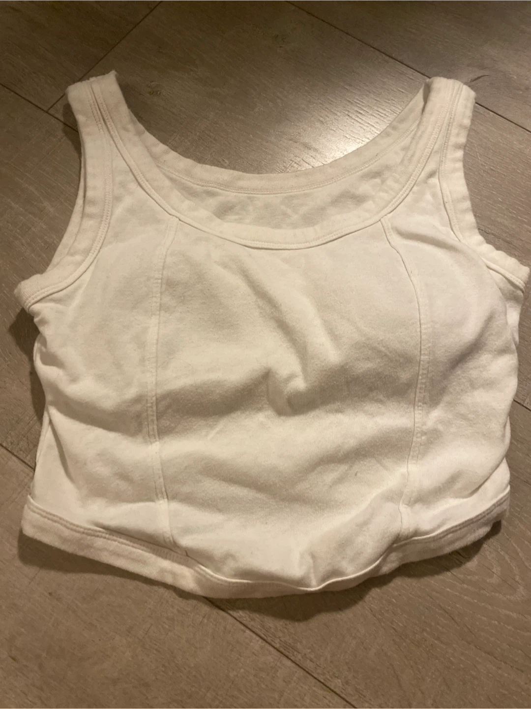 Selling a white tank top, perfect for layering or wearing on its own! It's in great condition and ready for a new wardrobe