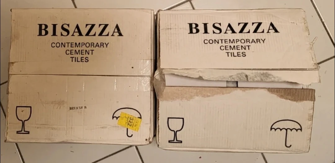 Selling 24 8-in square Bisazza contemporary cement tiles (2 boxes). Made in Tunisia.