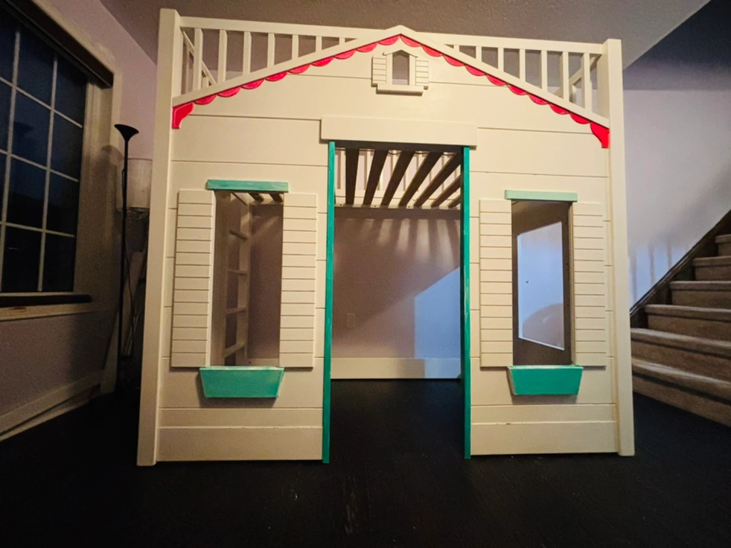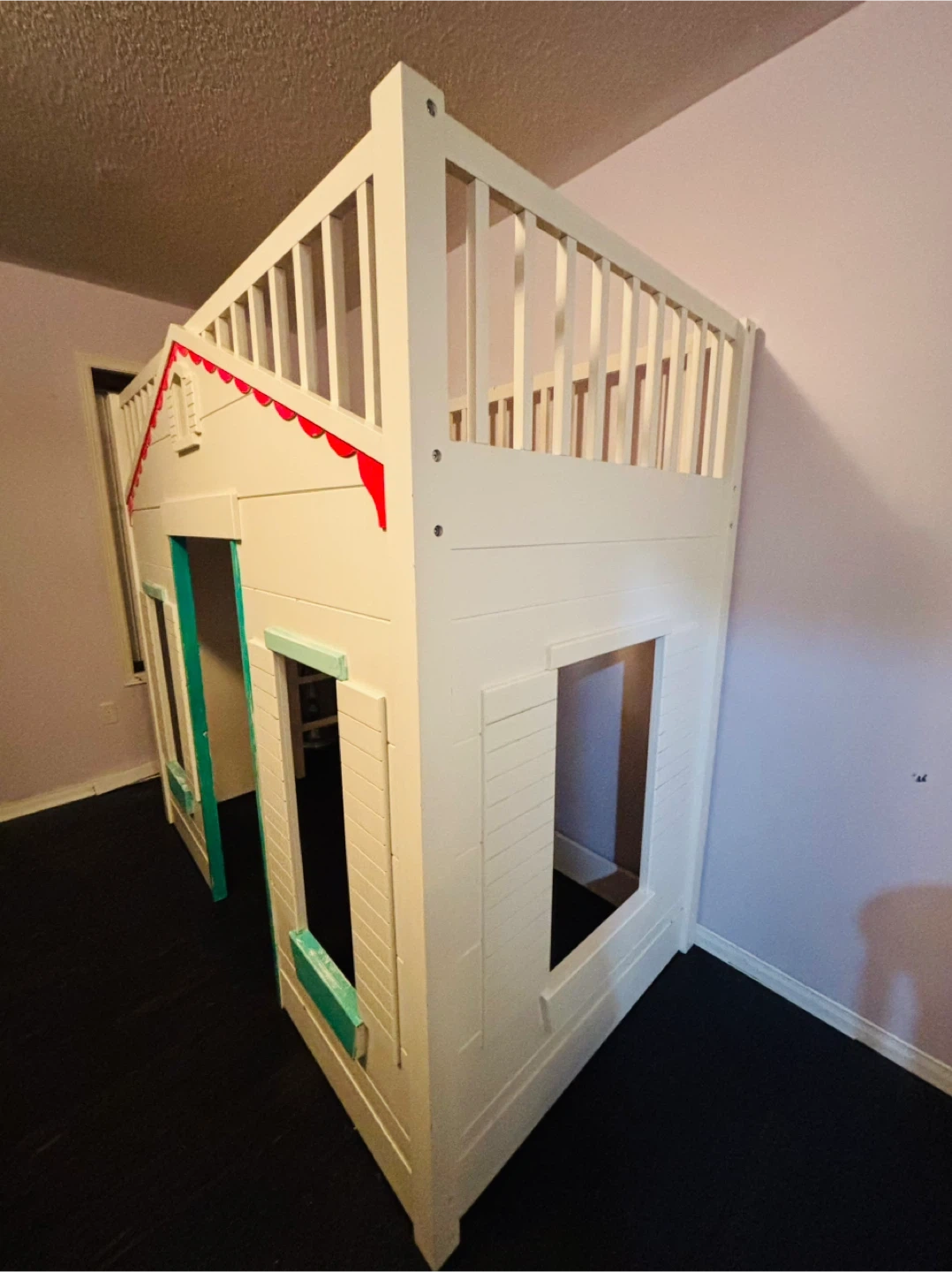 ✔ Super cute playhouse design with windows + upper railings