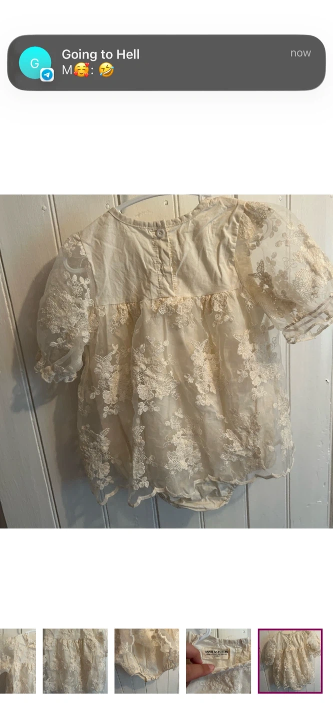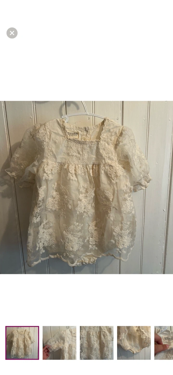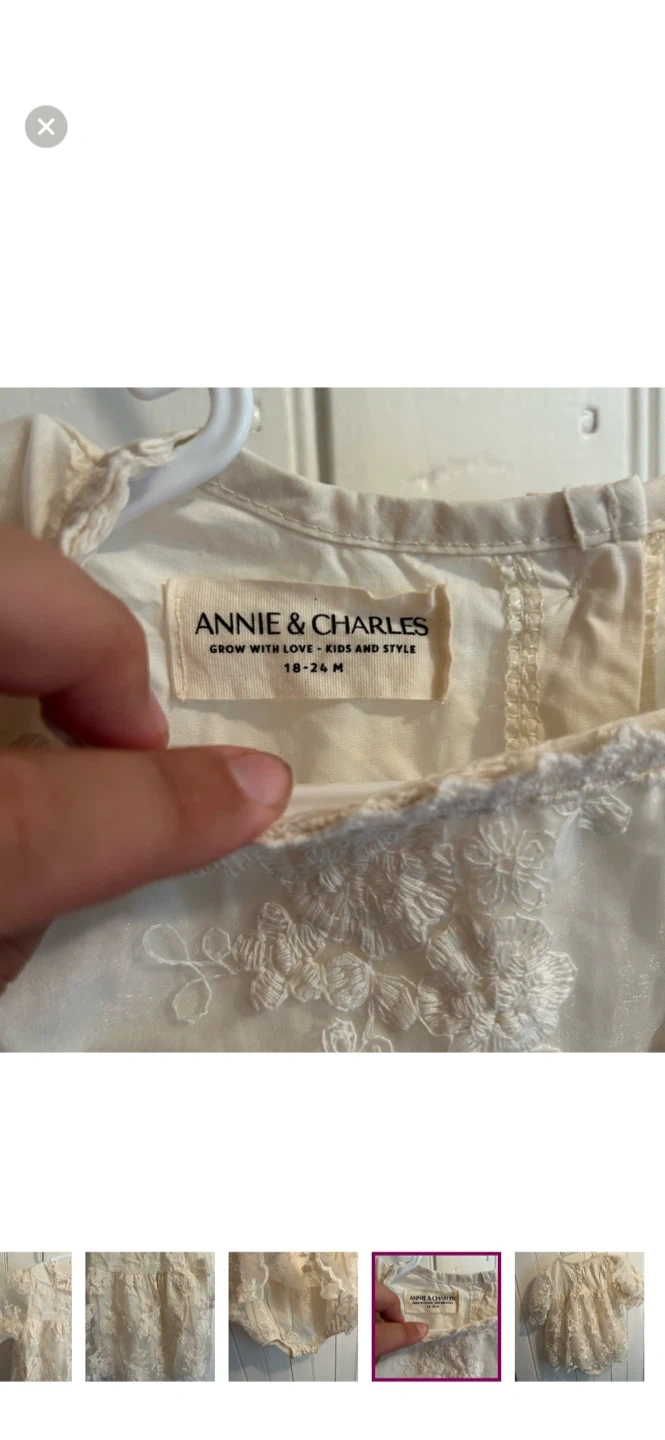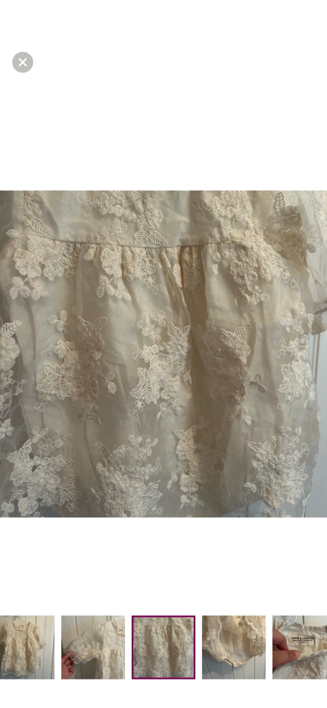 Annie & Charles brand. Short sleeve onesie with lace skirt overlay. White in colour. Size 18/24m. Brand new condition