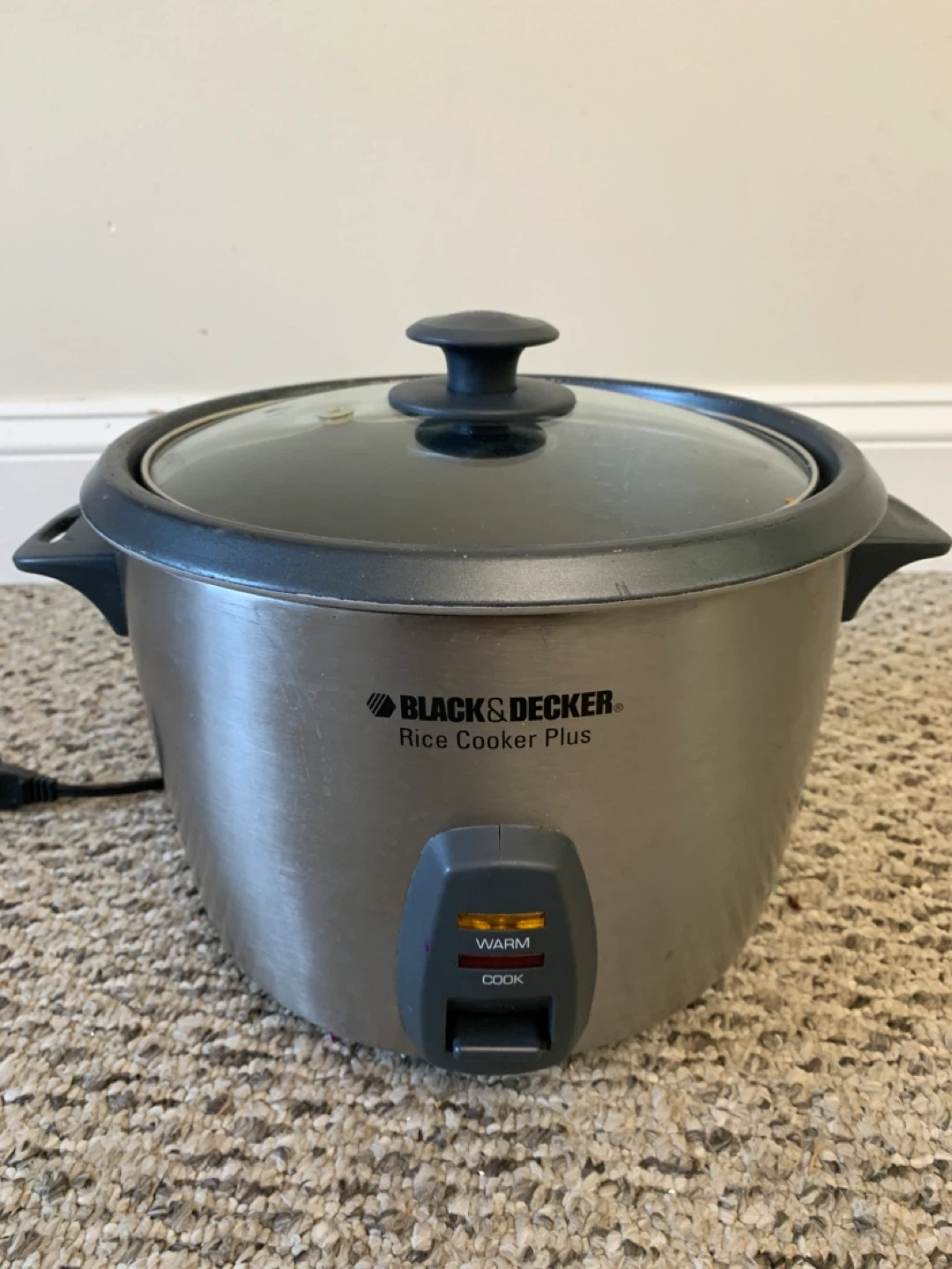 Selling a Black & Decker Rice Cooker Plus. It's in good used condition and ready to make some delicious rice! Includes the rice cooker, lid, and a rice paddle