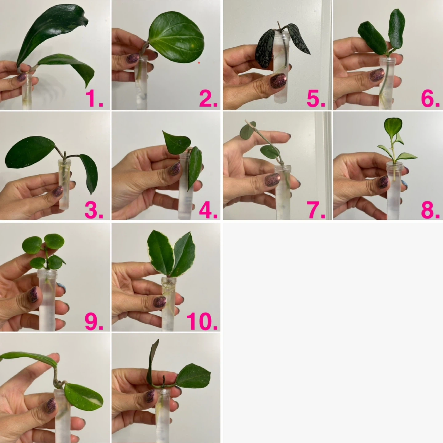 Cuttings in varying stages of rooting in water. Multiple of each available. Entire bundle with 12 varieties for $50. Individual prices listed below.