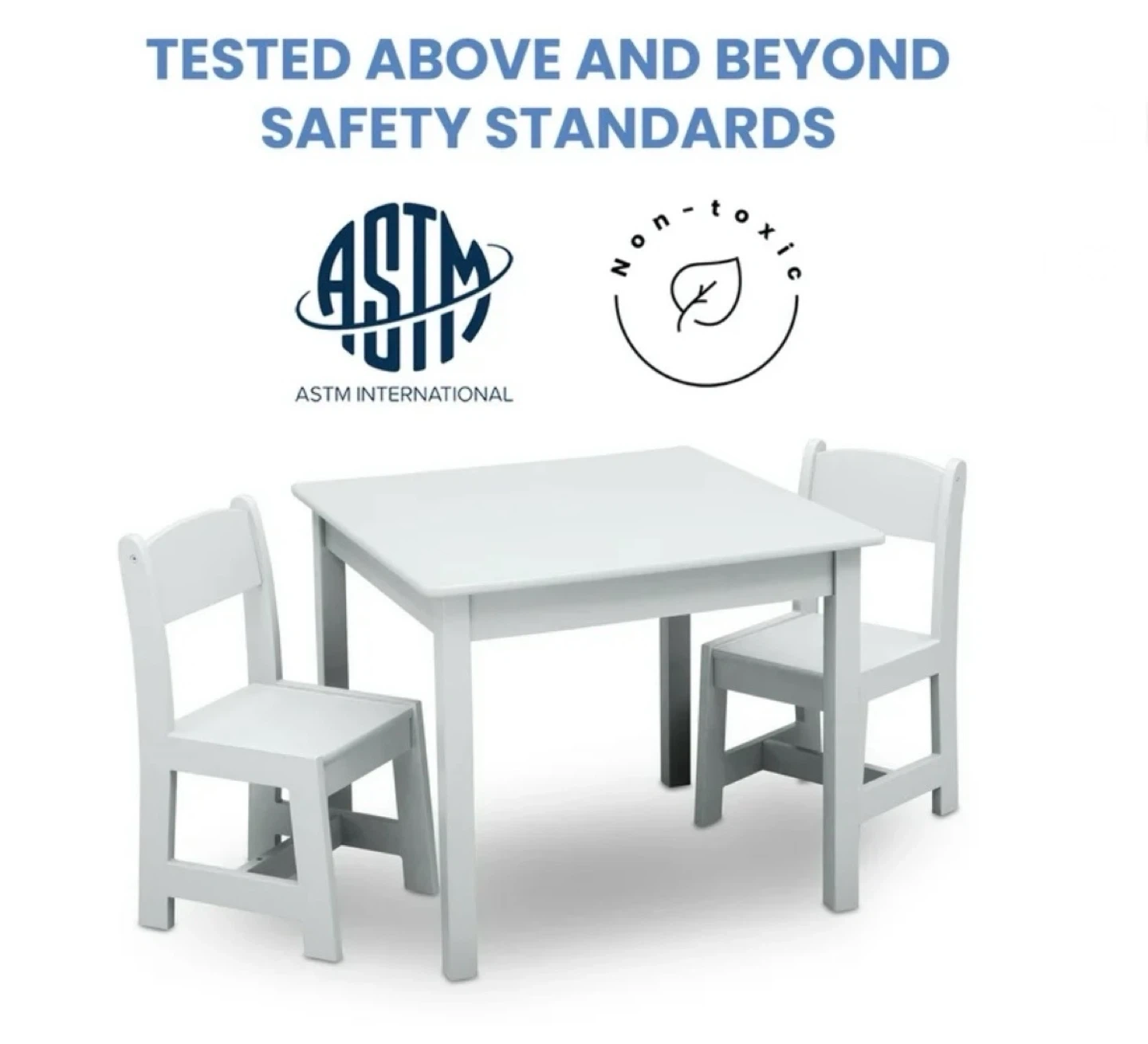 Delta Children MySize Wood Play Table and Chair Set (2 Chairs Included) - Greenguard Gold Certified, Bianca White