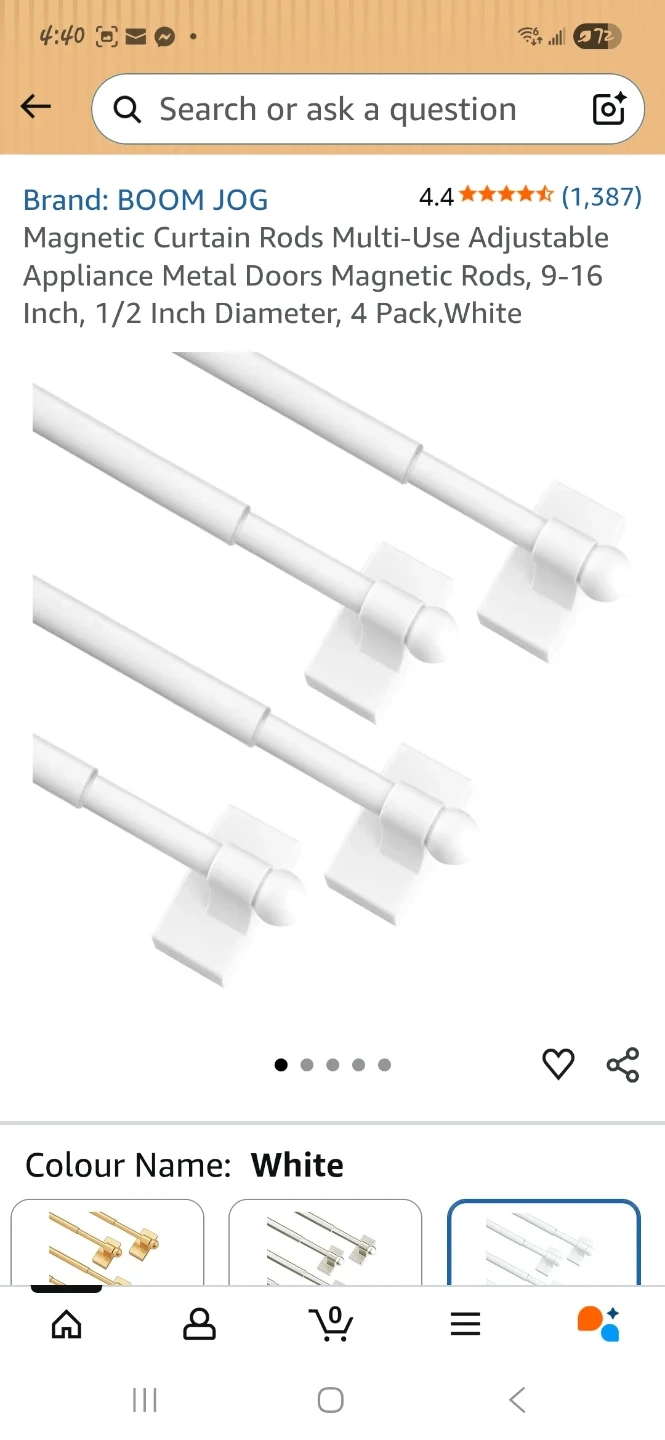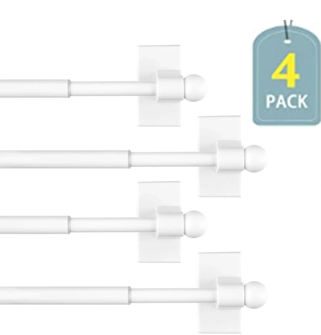 Selling a 4-pack of BOOM JOG magnetic curtain rods in white! These are multi-use adjustable rods, perfect for appliances or metal doors. They're magnetic, so no tools are needed for installation. The rods are adjustable from 9-16 inches and have a 1/2 inch diameter
