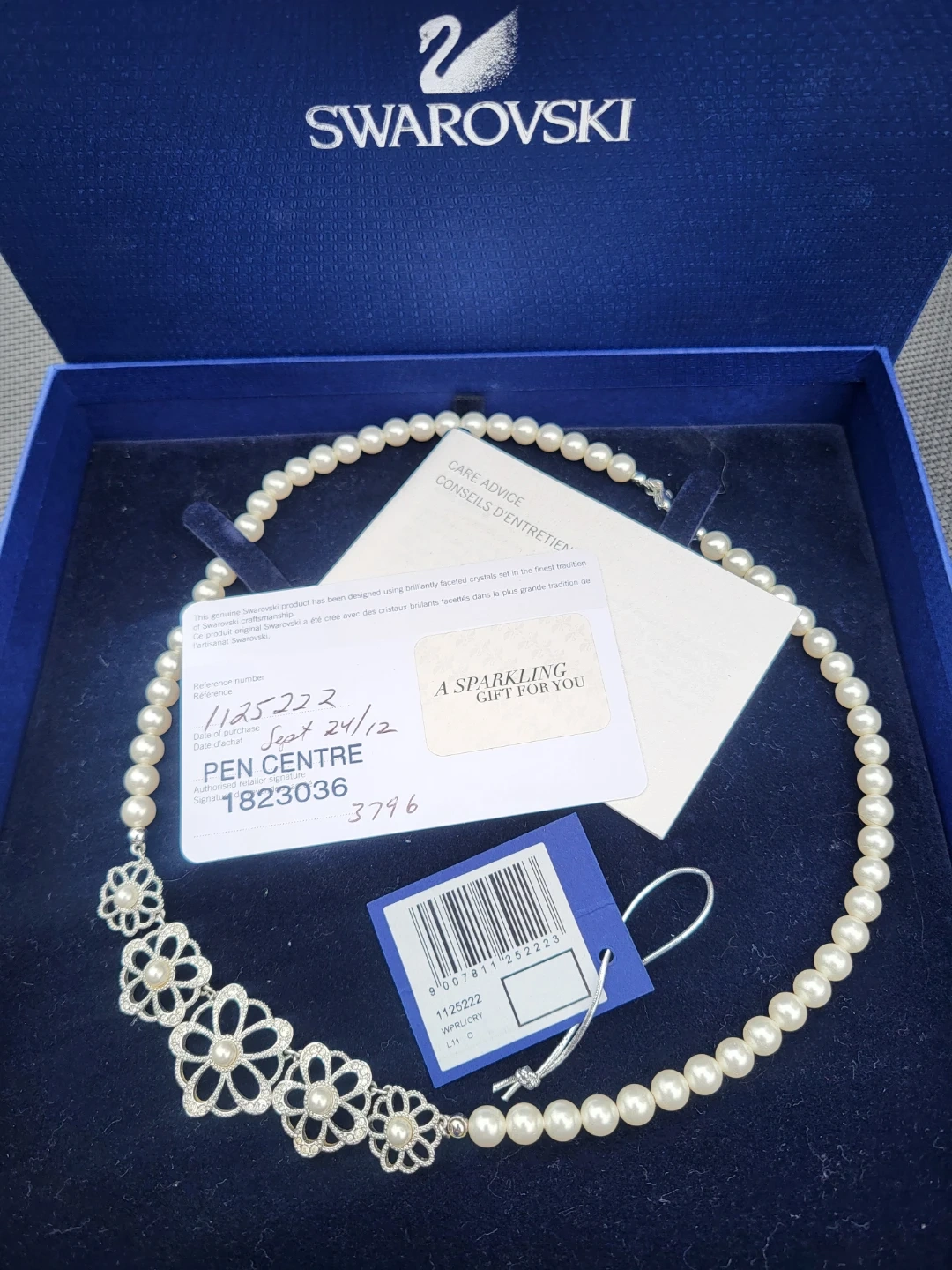 Looking for that perfect gift for her..this elegant glass pearl Daisy classic 2012 edition SWAROSKI necklace is that perfect gift to light up her beautiful face for valentines/wedding or just because. Comes with certificate of Authenticity card and care guid. It was only worn once.