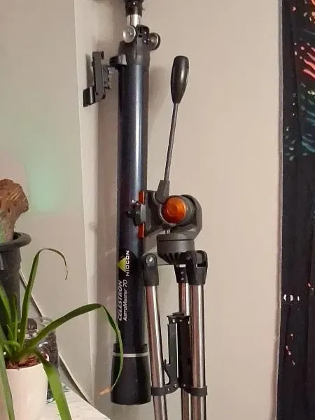 Looking to explore the night sky? This Celestron AstroMaster 70 telescope could be just the ticket! It comes with a tripod and appears to be in good condition, ready for your stargazing adventures