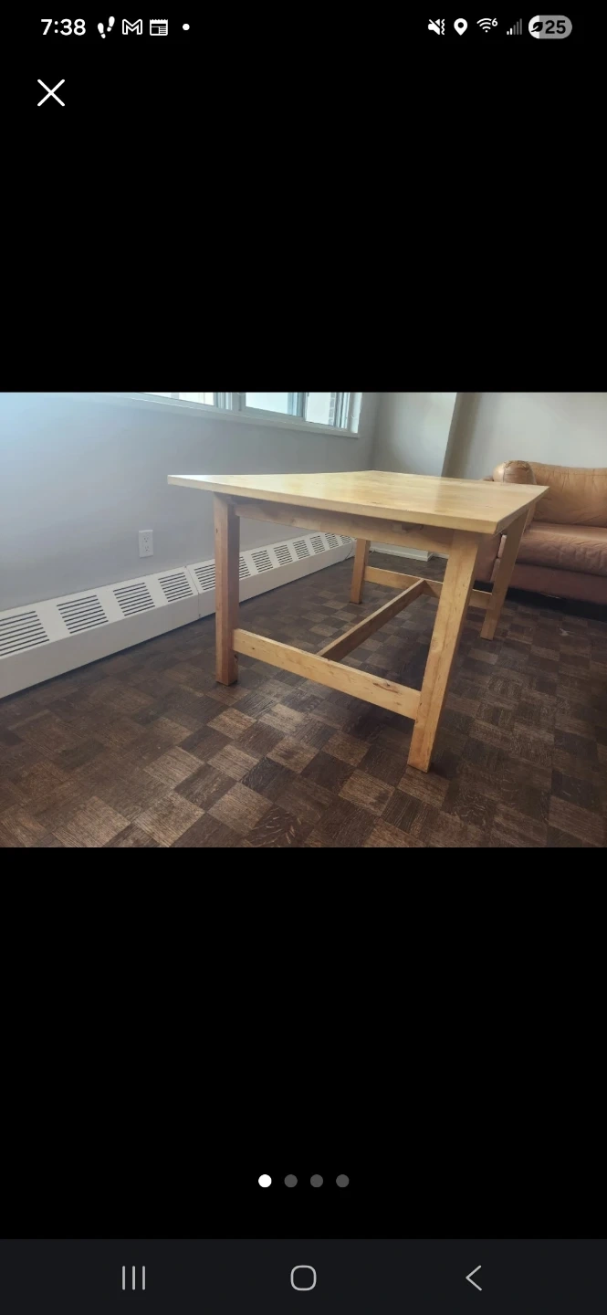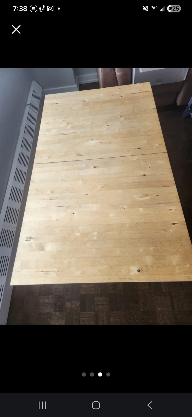 Selling a wooden dining table. It's extendable, making it perfect for both everyday meals and larger gatherings. There are some scratches on the surface, but it's still sturdy and functional