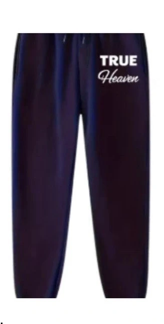 Selling a pair of black sweatpants with 'TRUE Heaven' printed on them! They're super comfy and great for lounging around at home or running errands. The material feels soft and cozy, perfect for the cooler weather.