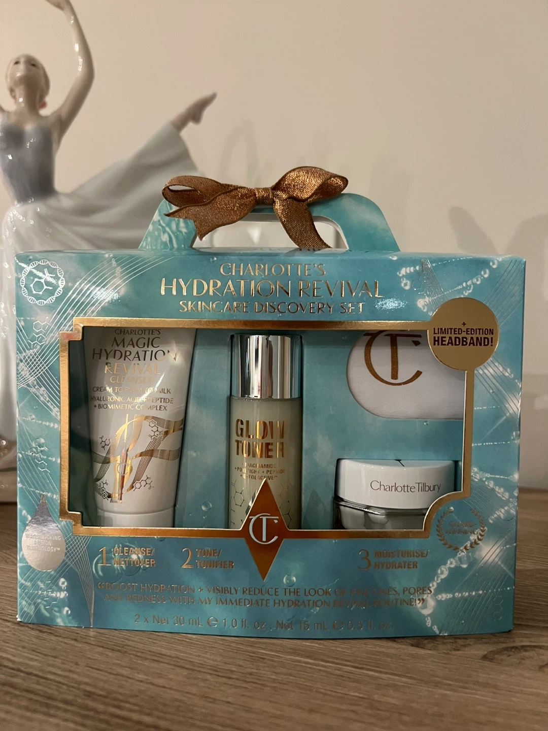 Selling a Charlotte Tilbury Hydration Revival Skincare Discovery Set with Magic Water Cream! It includes a cleanser, toner, and moisturizer to keep your skin glowing and hydrated. Originally bought for $65 plus tax.