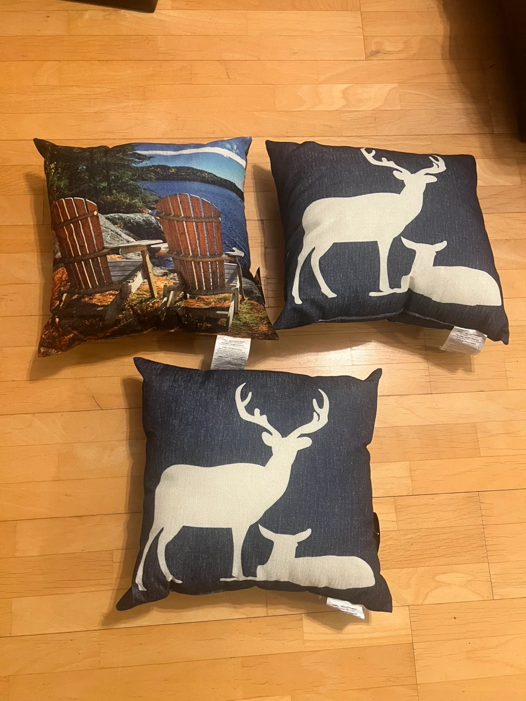 Here are three Bellisimo faux linen cushions to spruce up your space! Two feature a charming deer design, and the third has a lovely lake scene. They're new, never used. They were given to me and I couldn’t return. Tags still on. $5 each