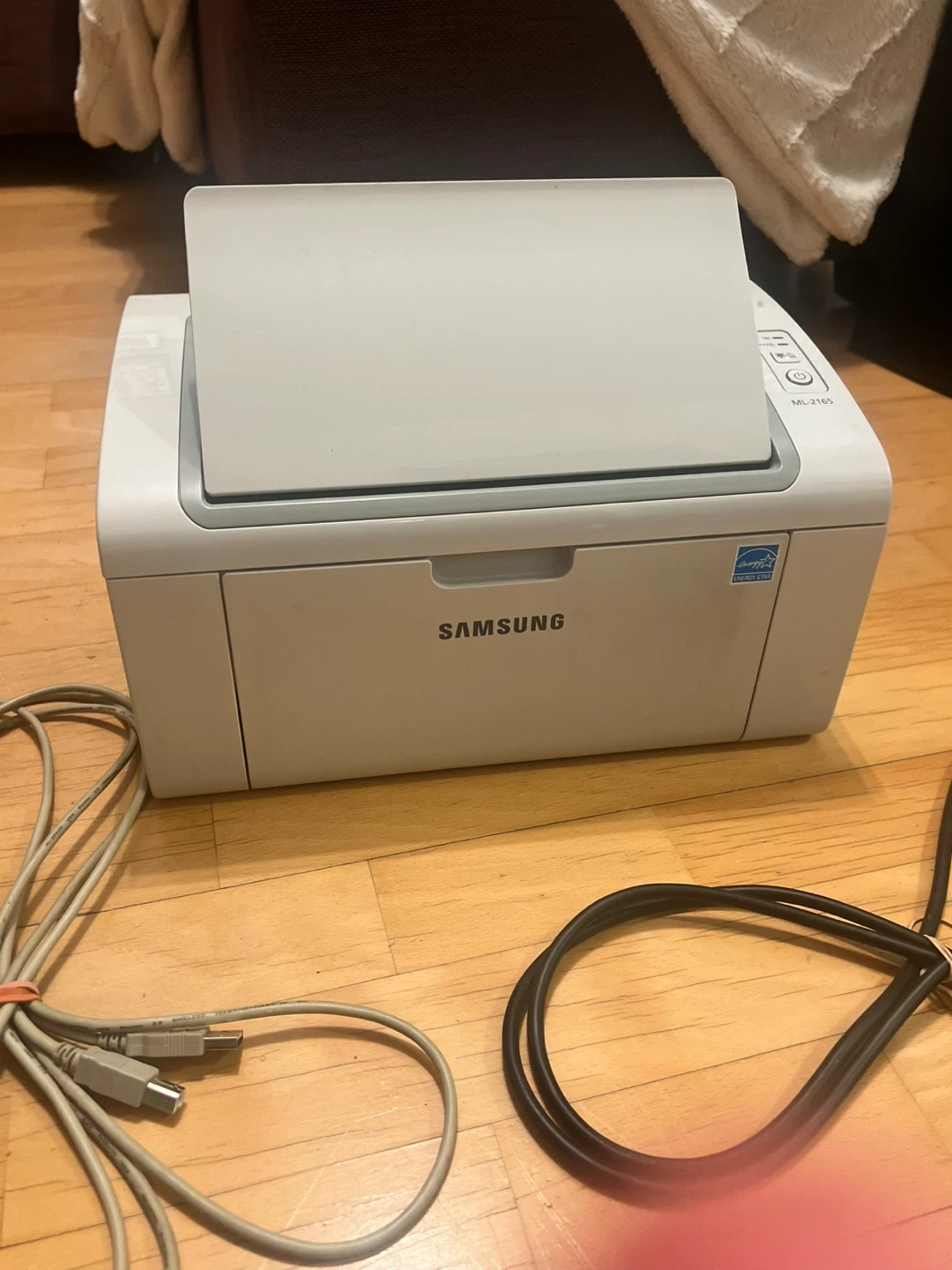 Selling a Samsung ML-2165 laser printer. It's in good working condition and ready for a new home office! Comes with the power cable and USB cable. I love this printer. When I bought a new laptop it was not compatible. It is not Bluetooth so you will need to connect via USB cable. I have had it a long time and still works amazing. Sad I could not keep it.