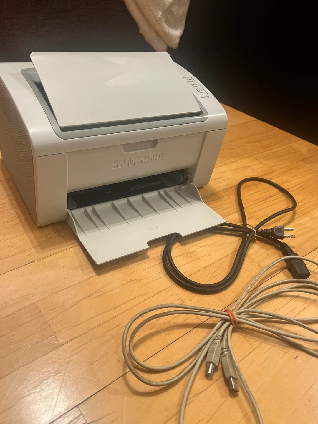 Selling a Samsung ML-2165 laser printer. It's in good working condition and ready for a new home office! Comes with the power cable and USB cable. I love this printer. When I bought a new laptop it was not compatible. It is not Bluetooth so you will need to connect via USB cable. I have had it a long time and still works amazing. Sad I could not keep it.