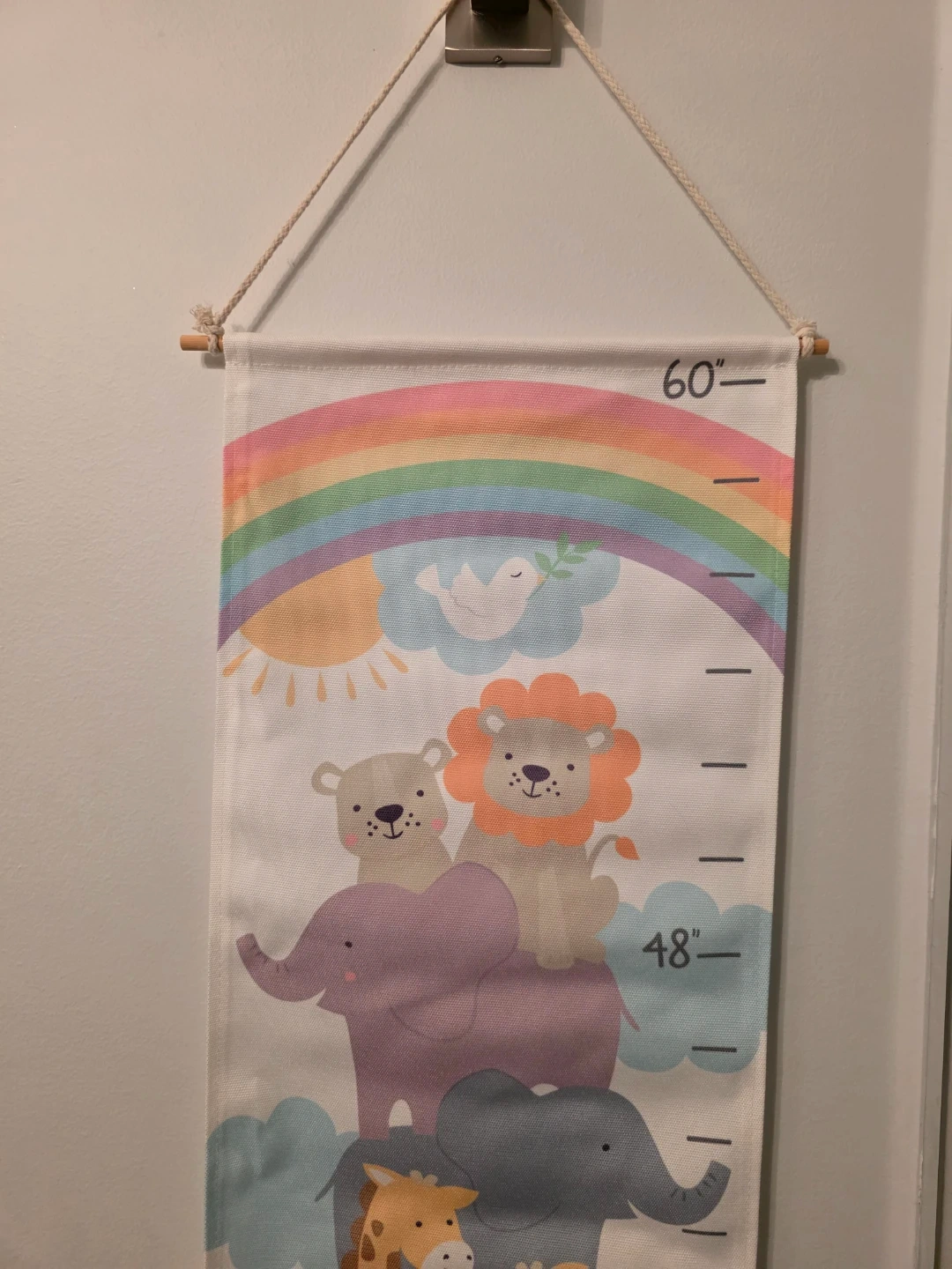 Cute animal-themed height chart for kids! It features colourful animals like giraffes, elephants, lions, and whales, marked with measurements up to 60 inches. Perfect for tracking your little one's growth!