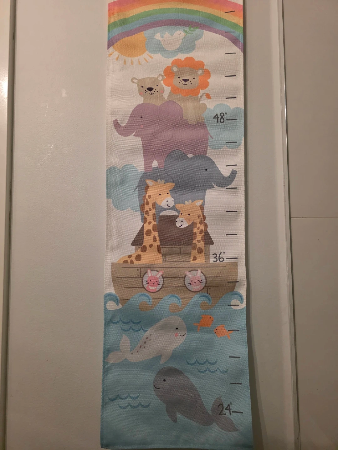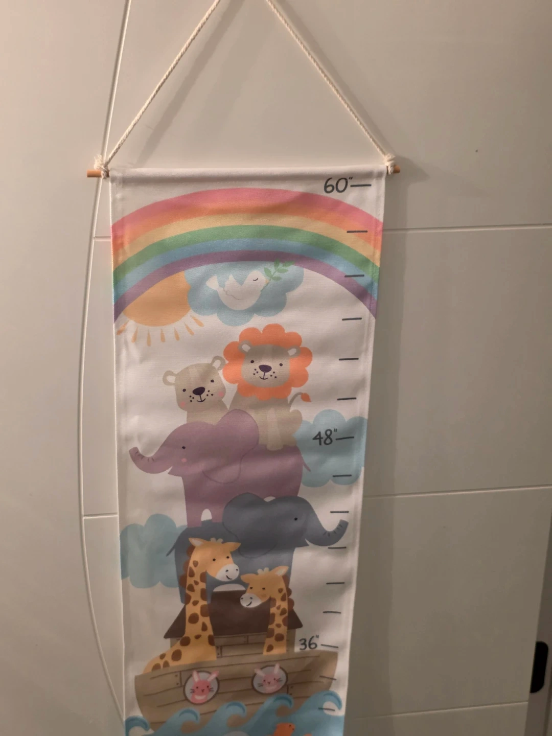 Cute animal-themed height chart for kids! It features colourful animals like giraffes, elephants, lions, and whales, marked with measurements up to 60 inches. Perfect for tracking your little one's growth!