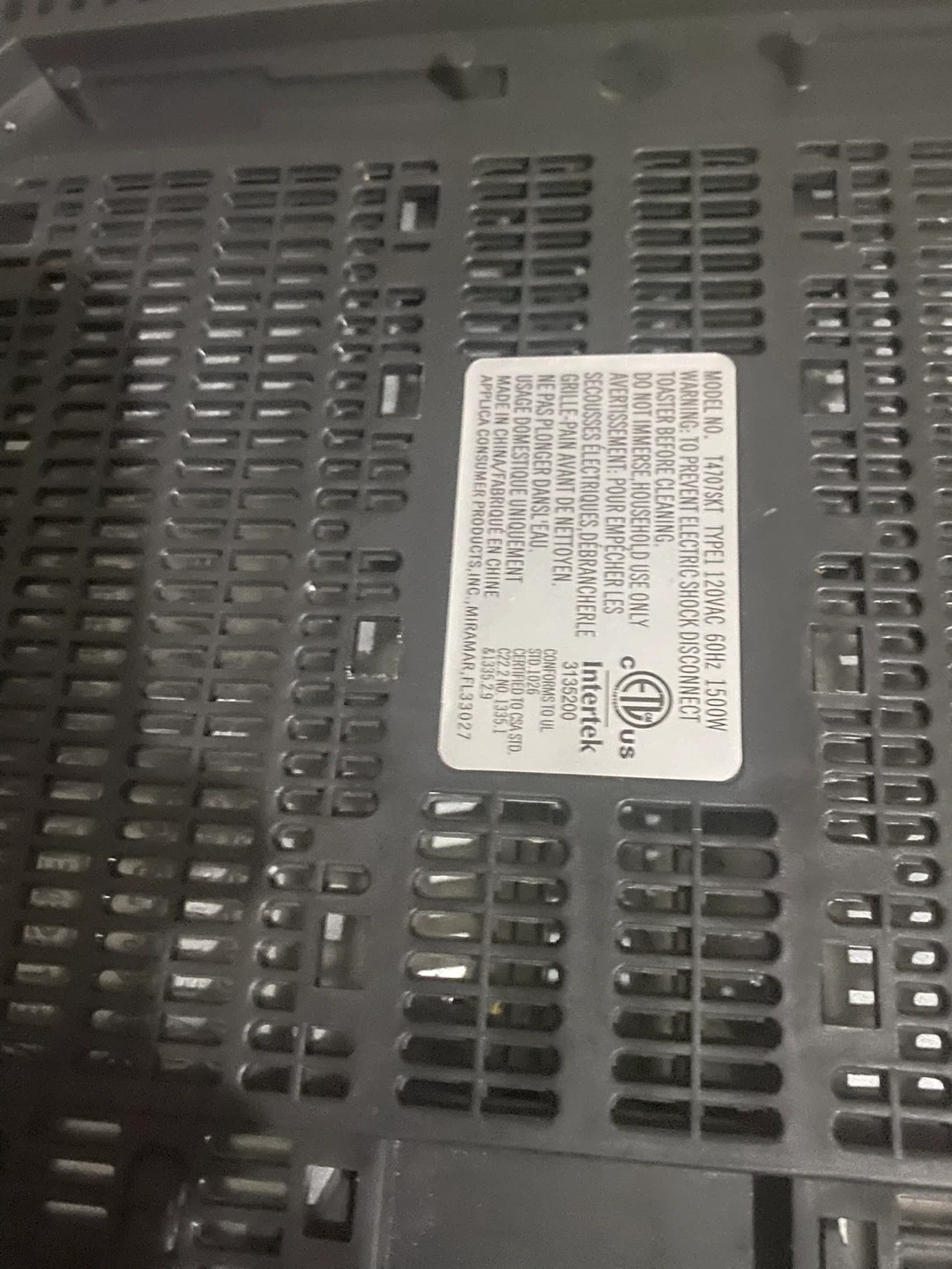 Selling a Black & Decker 4-slice toaster. It's in used condition, but still works. Model number is 14030T. It is rated for 120VAC, 60Hz, and 1500W.