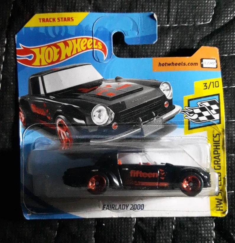 Selling a Hot Wheels Fairlady 2000 from the Track Stars series! It's black with red accents and marked with 'fifteen'. A great addition to any Hot Wheels collection