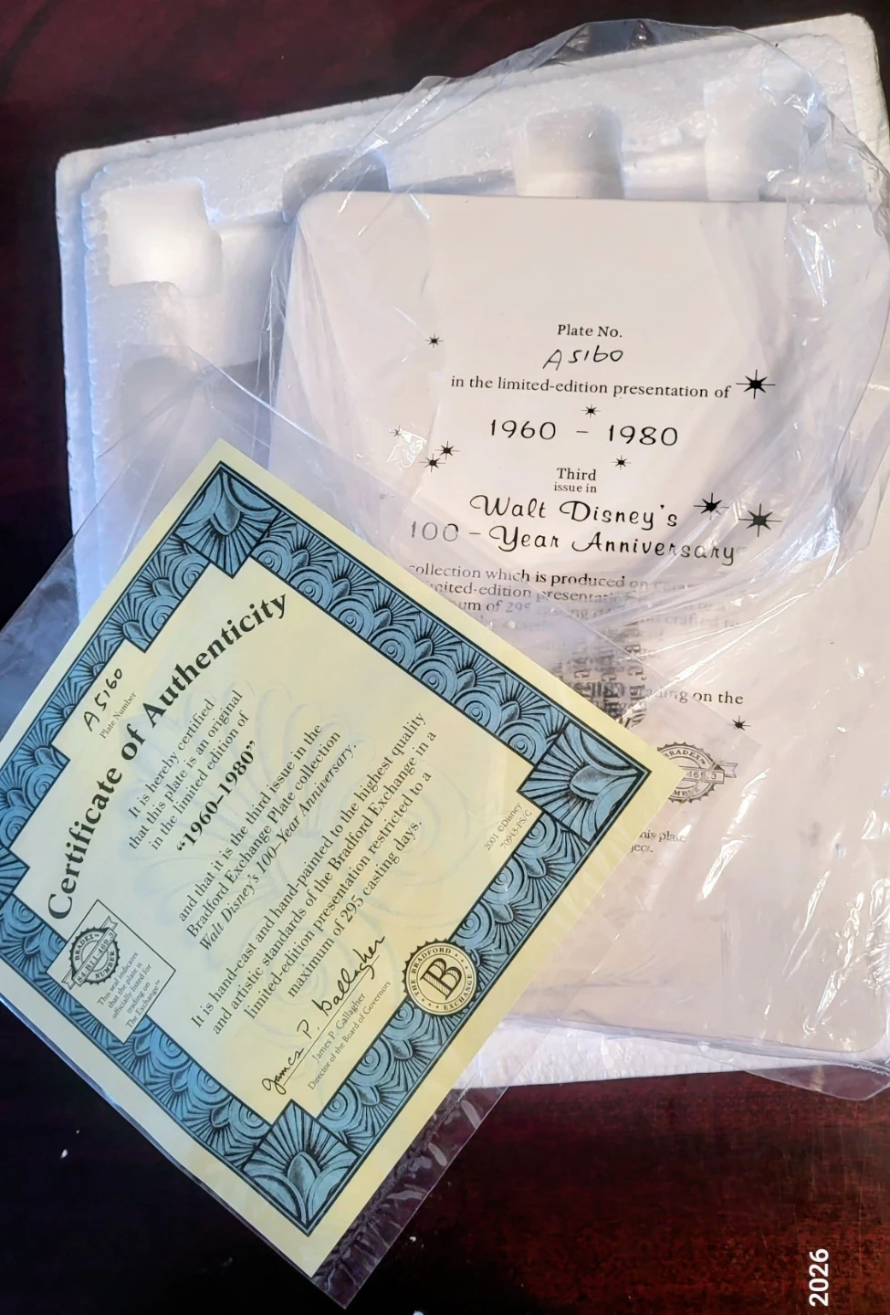 🥕 I have 3 Walt Disney 100-Year Anniversary plates for sale. All plates are new and unused, in original packaging and with all certificates.They are the 1st, 2nd and 3rd issue in the limited-edition presentation of 1920-1940, 1940-1960 & 1960-1980. Thess plates were officially listed for trading on the Bradford Exchange.