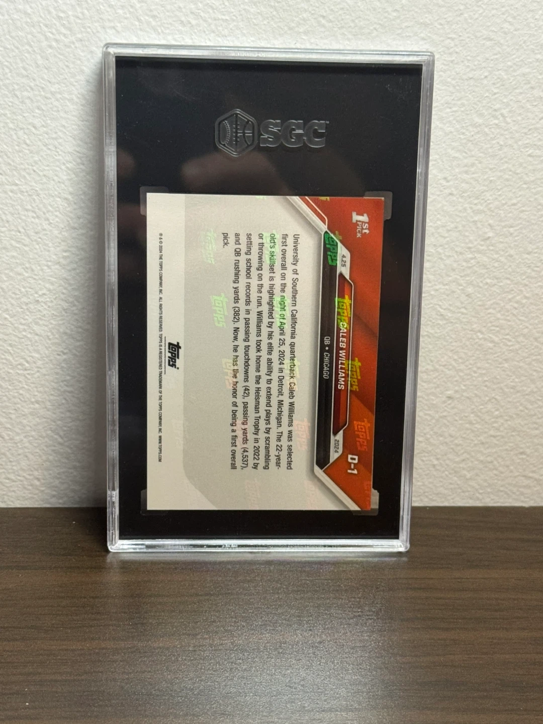 Selling a 2024 Topps Now Draft Caleb Williams rookie card, graded 10 by SGC! It's a great addition to any sports card collection. Caleb Williams was the first overall pick in the 2024 NFL draft, selected by the Chicago Bears🏈