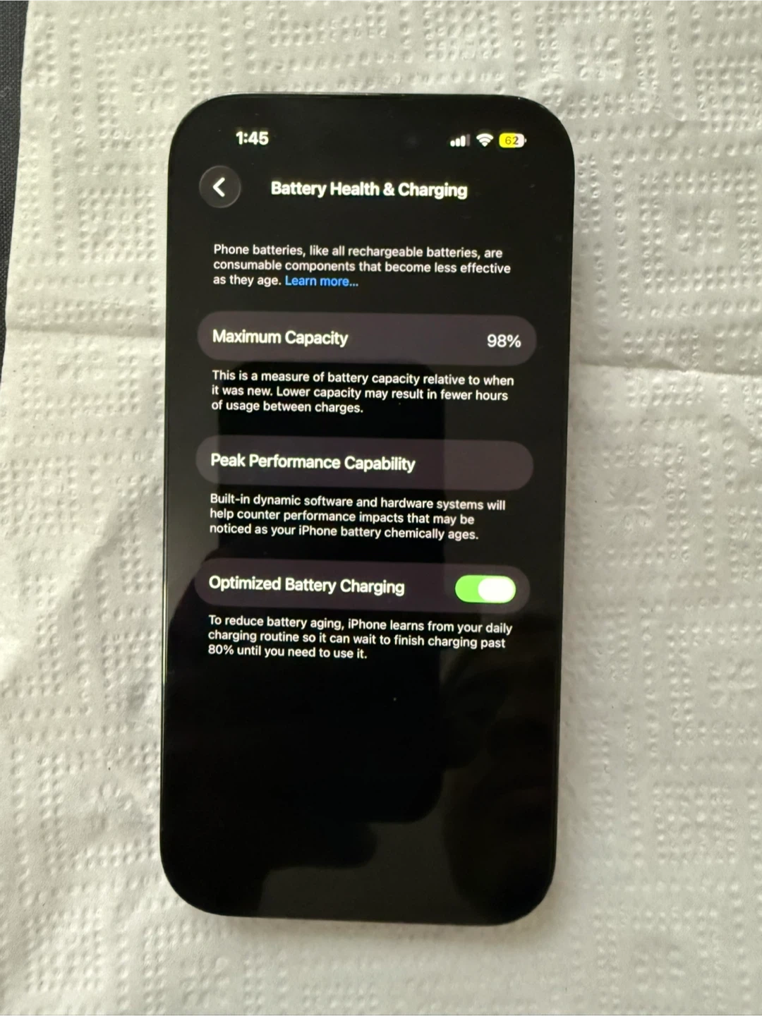 Selling an iPhone 14 Pro in black. It's in good condition and ready for a new owner! This phone has a great camera, good battery percentage (98%), nothing has been replaced.128gb, AppleCare+ active until February 3.