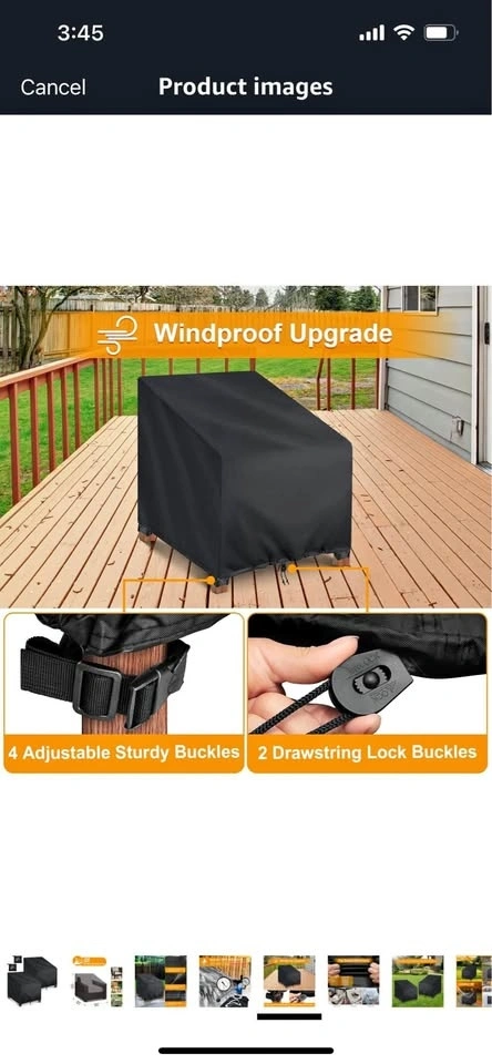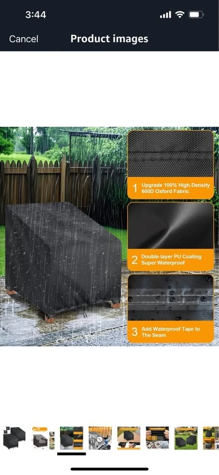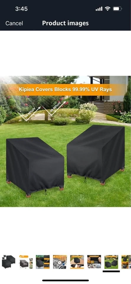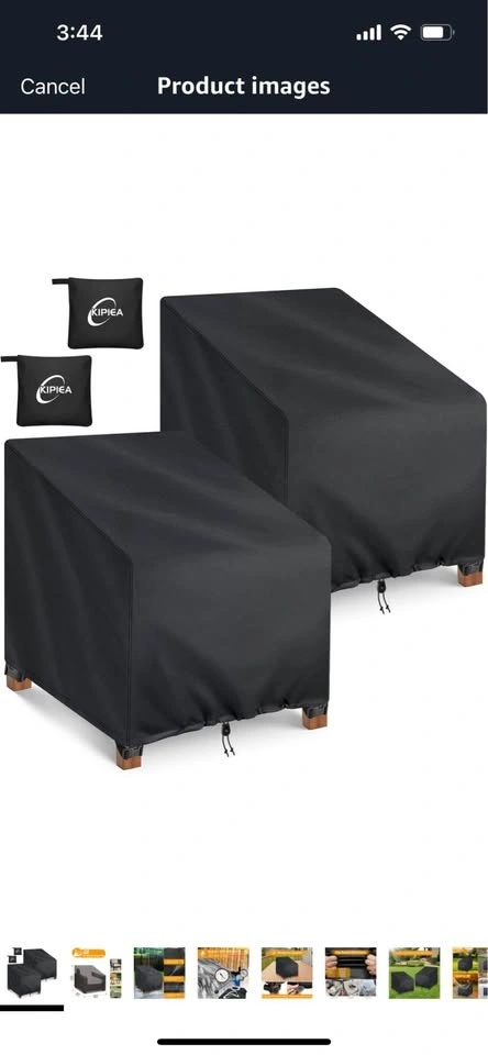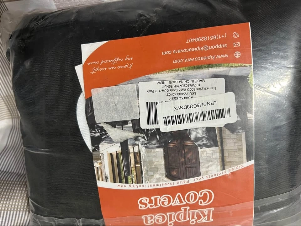 I have a brand new set of Kipiea 600D patio chair covers for sale! This is a 2-pack. They are waterproof for winter and protect outdoor furniture set covers for table chairs. They are heavy-duty sofa covers with anti-UV and no tears. The dimensions are 102Wx102Dx79H/59Hcm.