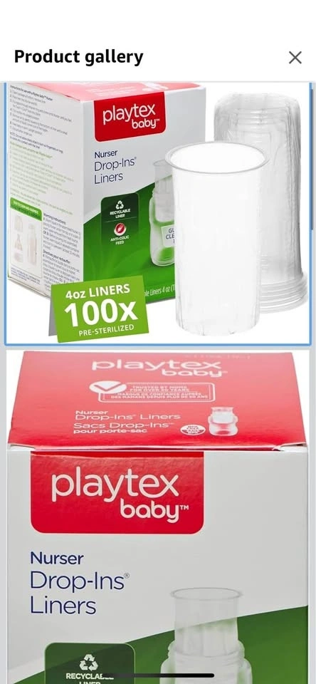 Selling a new pack of Playtex Baby Nurser Drop-Ins Liners 4oz(118mL)! These are disposable liners for baby bottles that make cleanup easy and reduce air intake for gas-free feeding. Each liner is pre-sterilized and made with recyclable materials. The pack contains 100 liners!