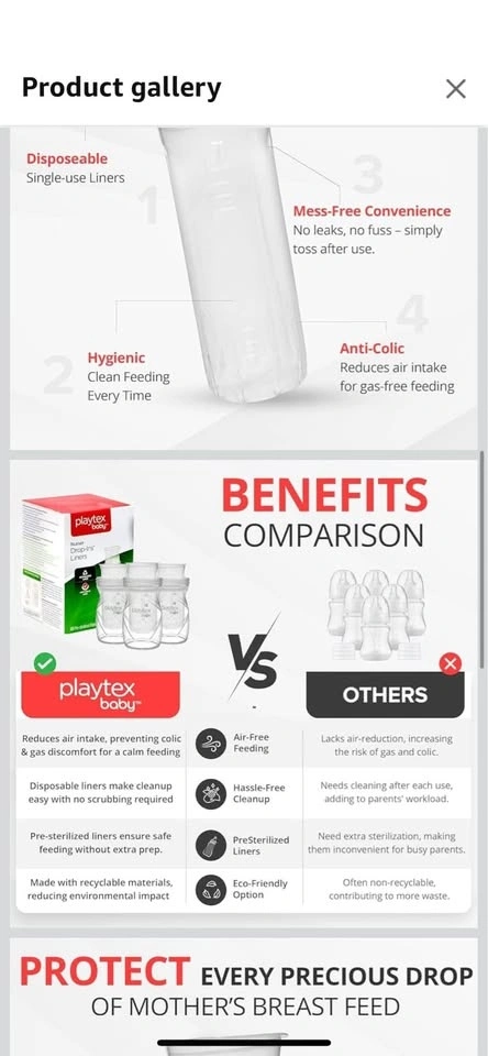 Selling a new pack of Playtex Baby Nurser Drop-Ins Liners 4oz(118mL)! These are disposable liners for baby bottles that make cleanup easy and reduce air intake for gas-free feeding. Each liner is pre-sterilized and made with recyclable materials. The pack contains 100 liners!