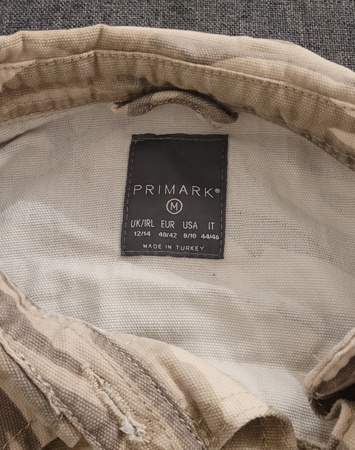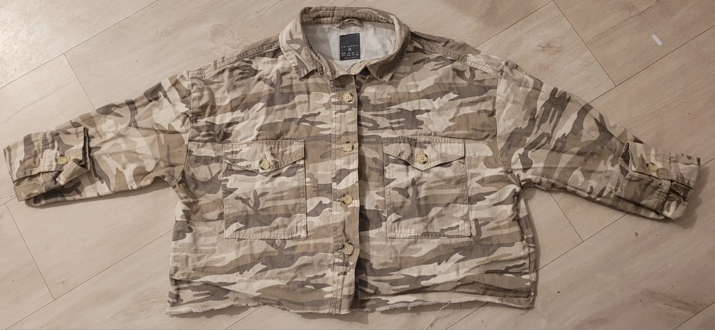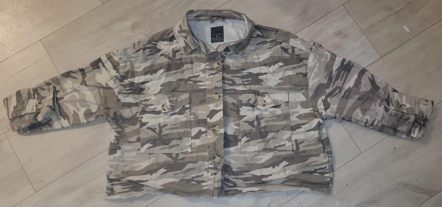 Selling a cute Primark camo jacket in size medium! It's in great condition and ready for a new home. The jacket features a classic button-up style with two front pockets. Made in Turkey. Never used