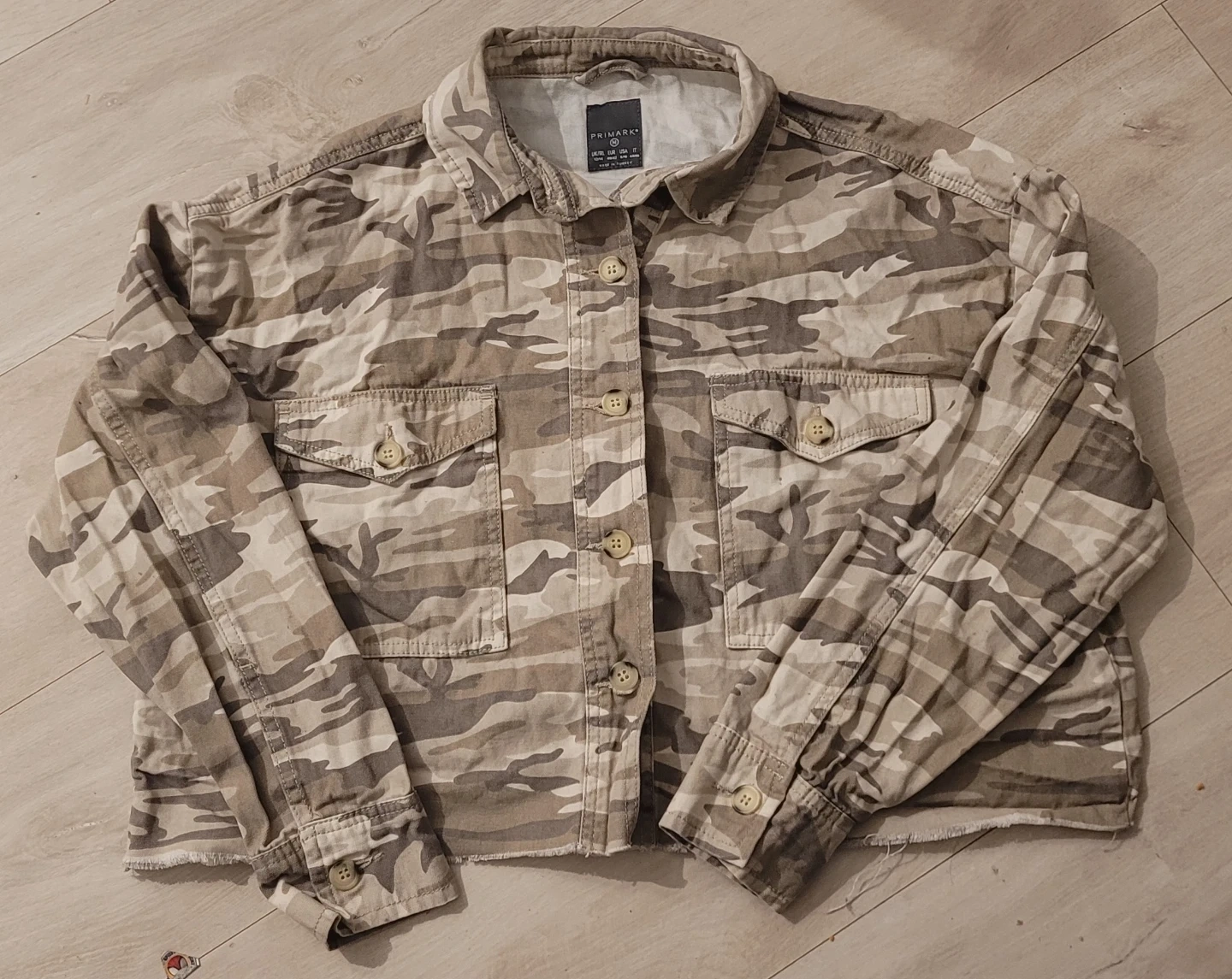 Selling a cute Primark camo jacket in size medium! It's in great condition and ready for a new home. The jacket features a classic button-up style with two front pockets. Made in Turkey. Never used