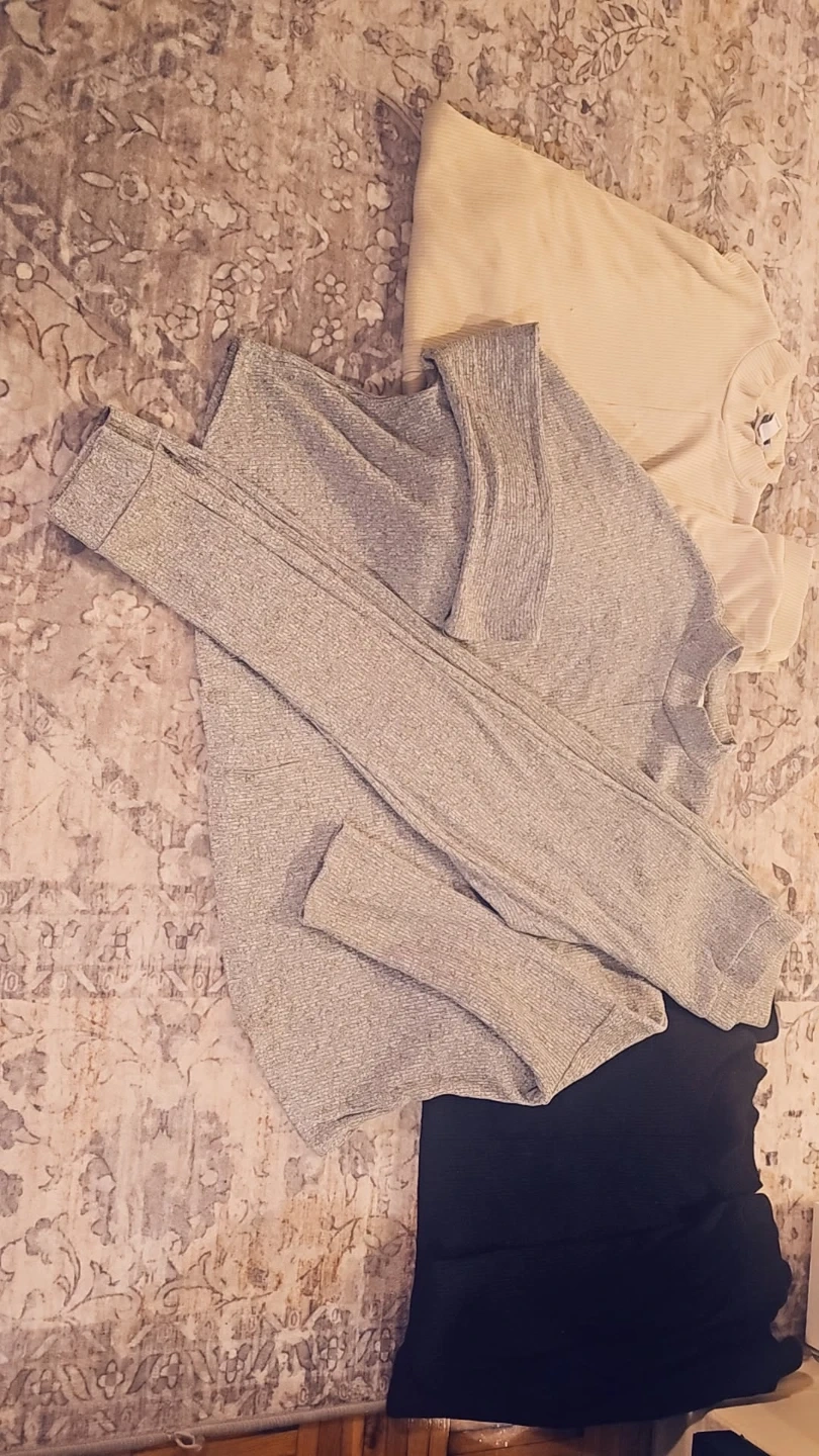 Selling 3 sets of ribbed knit tops and bottoms There is a black set, a grey set, and a cream set. All are in great condition and perfect for lounging or casual wear!