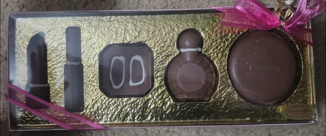 Selling a cute Chocolate Charm makeup set! It includes a chocolate lipstick, nail polish, perfume, and compact. Perfect for a unique gift or treat for yourself