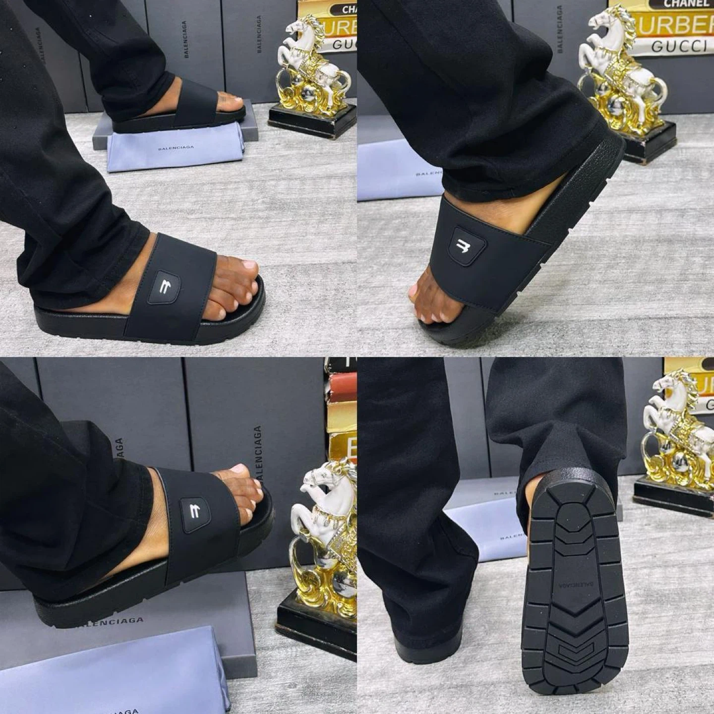 Selling a pair of Balenciaga slides in black, size 42. They are in great condition and come with the original box. These slides are perfect for a casual look and are super comfortable. Don't miss out!