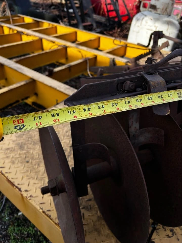 Vintage disc harrow, approximately 8 feet wide. Perfect for yard art, rustic décor, farm display, or as a source of quality steel for knife making and metal projects.