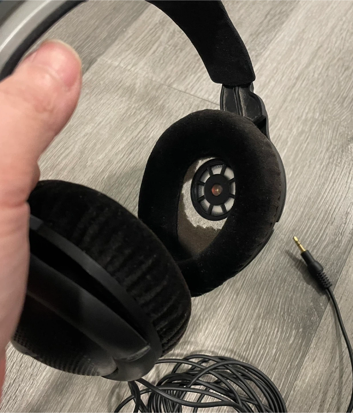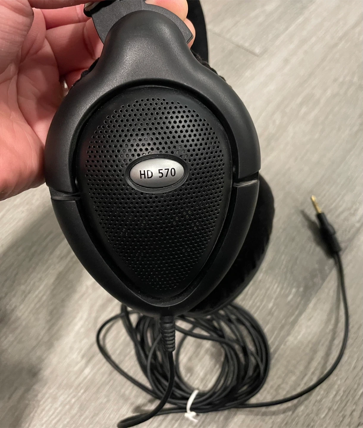 Selling a pair of Sennheiser HD 570 headphones in black. They show some signs of use, particularly on the earcups, but are still functional. Great for listening to music or podcasts.