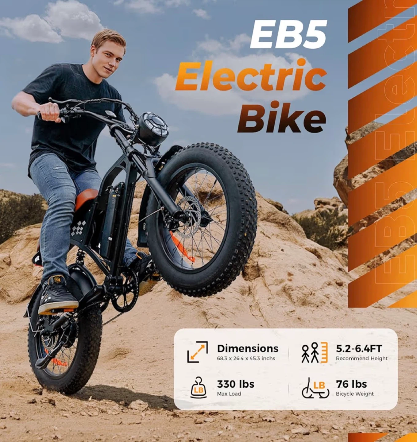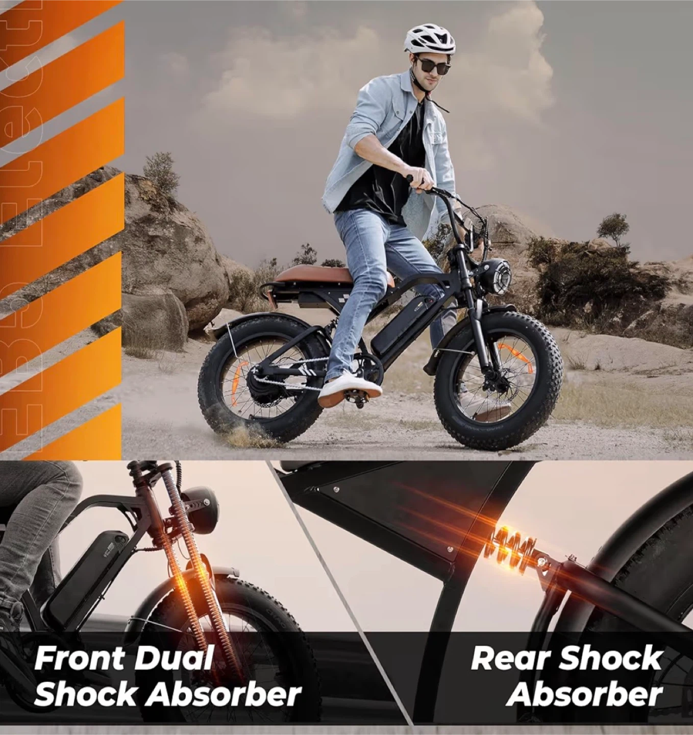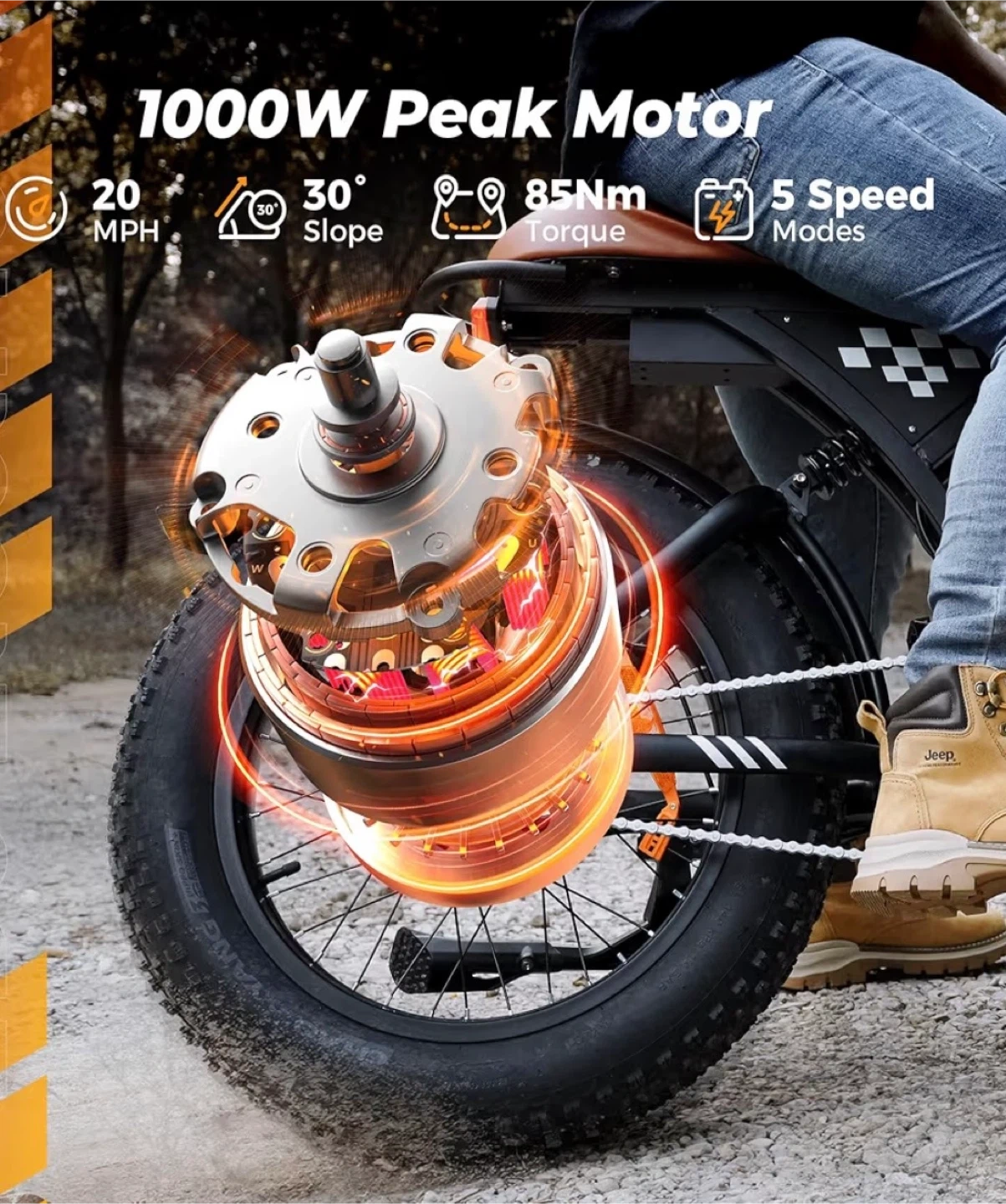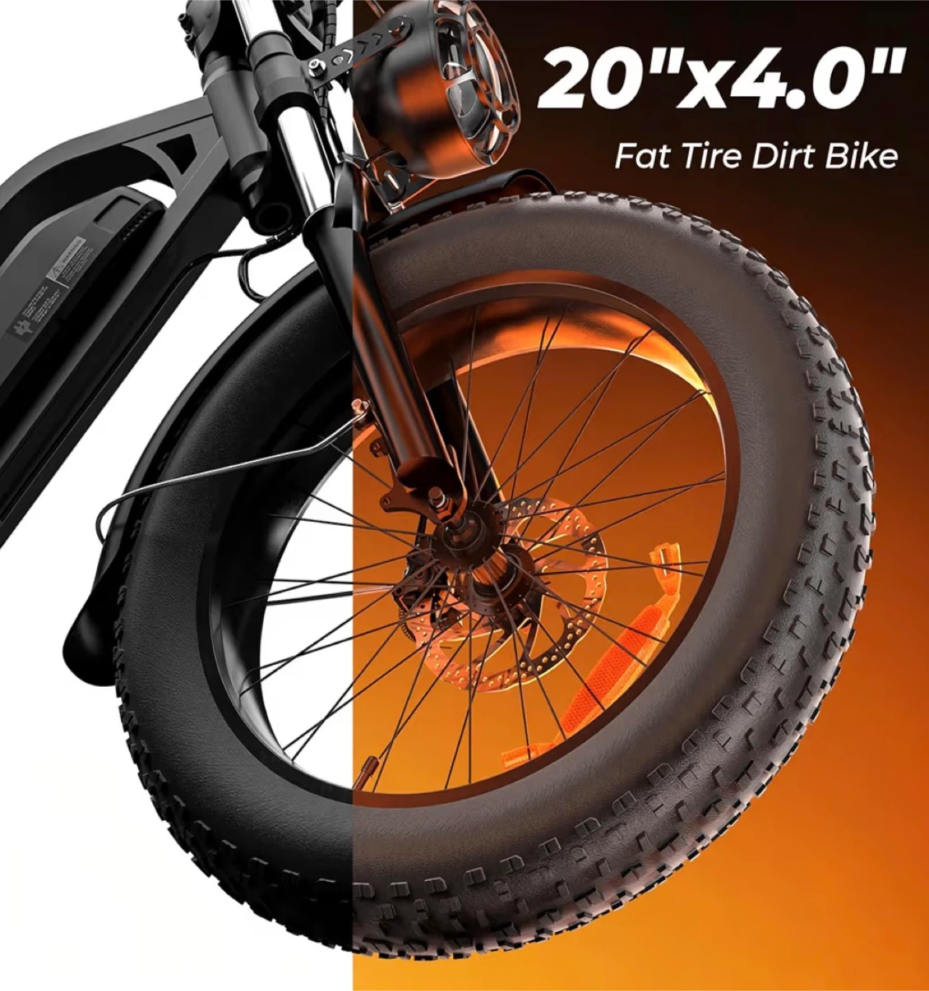 Selling a fat tire dirt bike with 20"x4.0" tires! It features a 1000W peak motor, reaching speeds of up to 20 MPH. The removable 10.4Ah battery provides a range of 60-110 miles. It also has dual disc brakes and dual shock absorbers for a smooth ride
