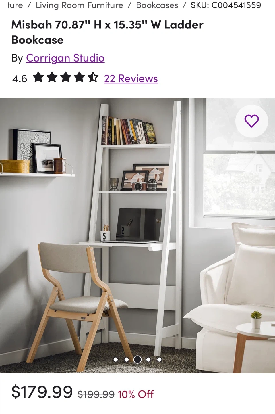 Ladder Bookcase w/ LED light bar under-shelf